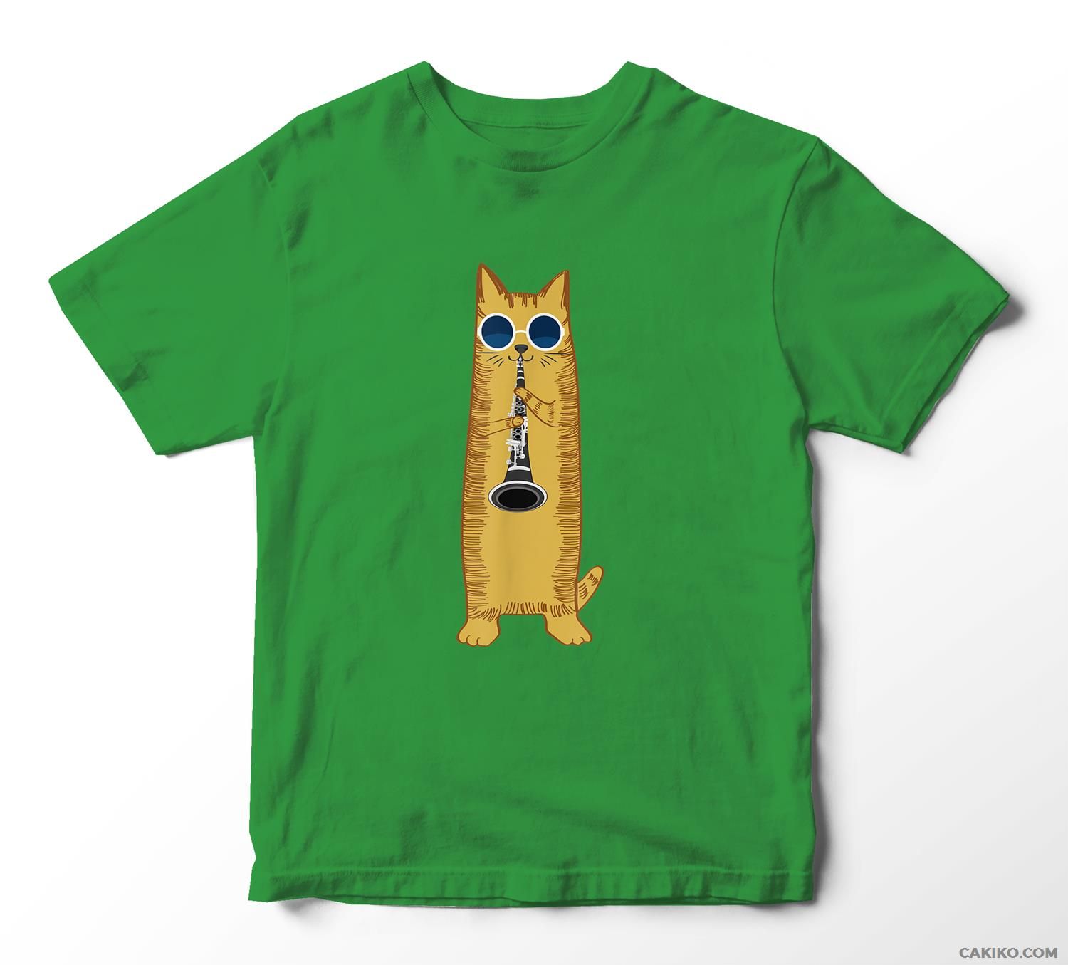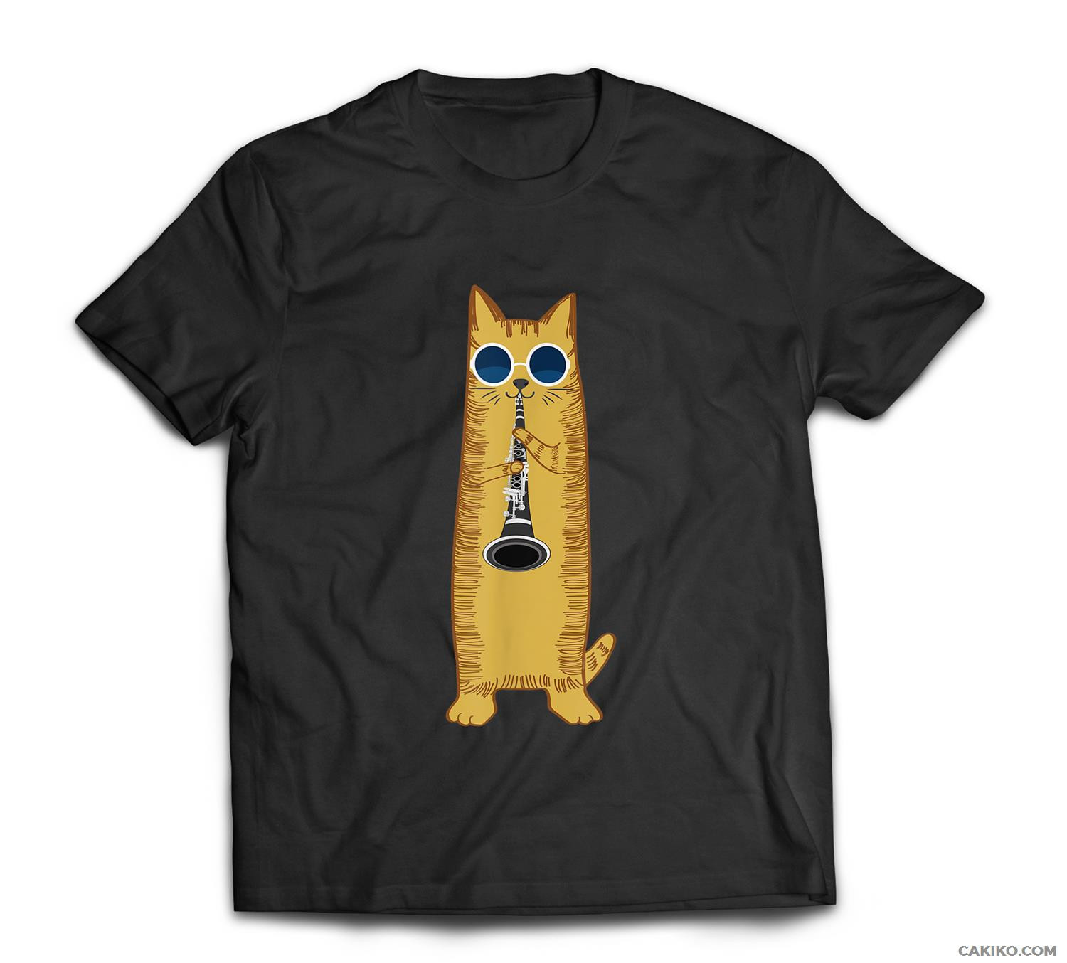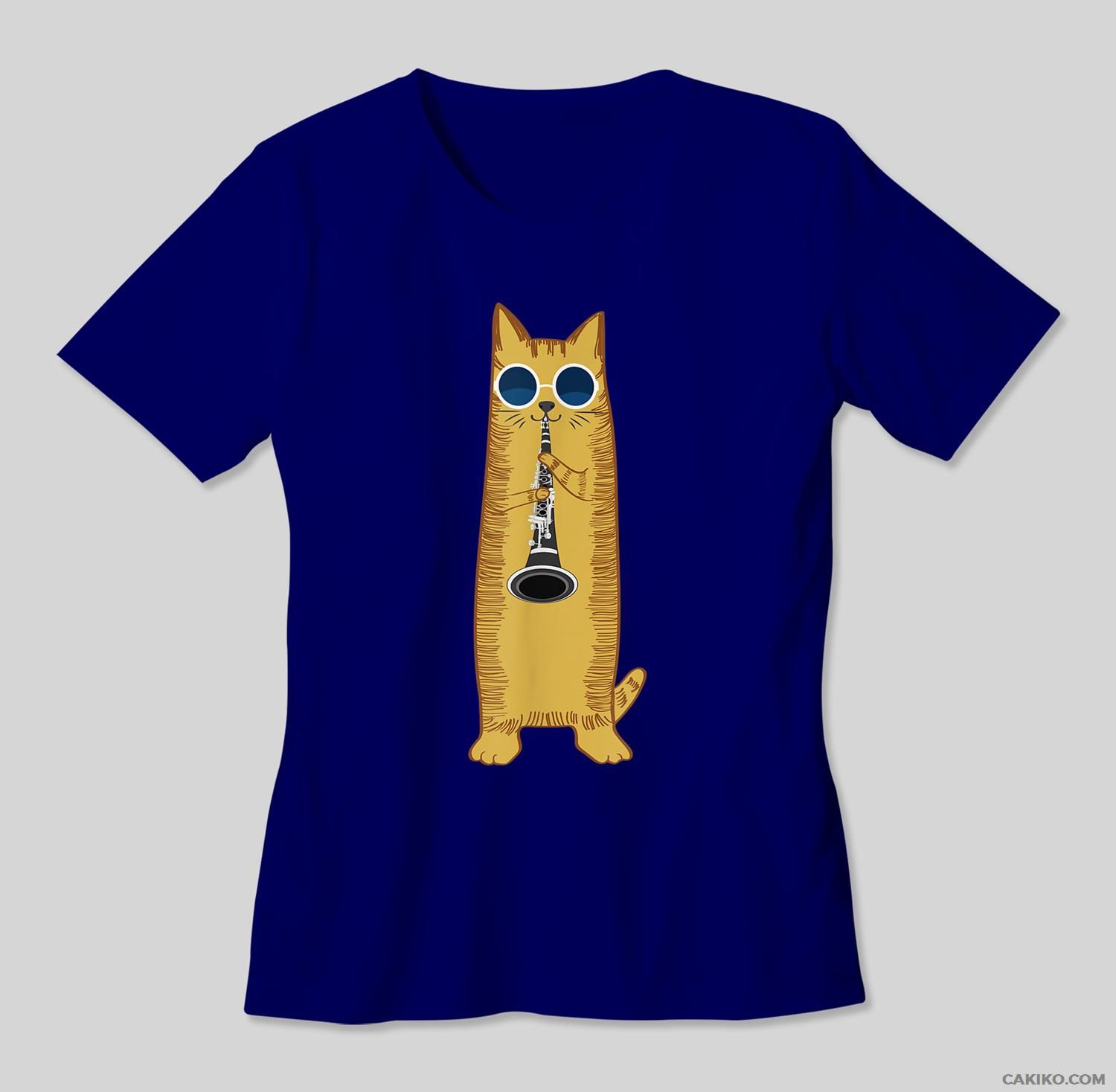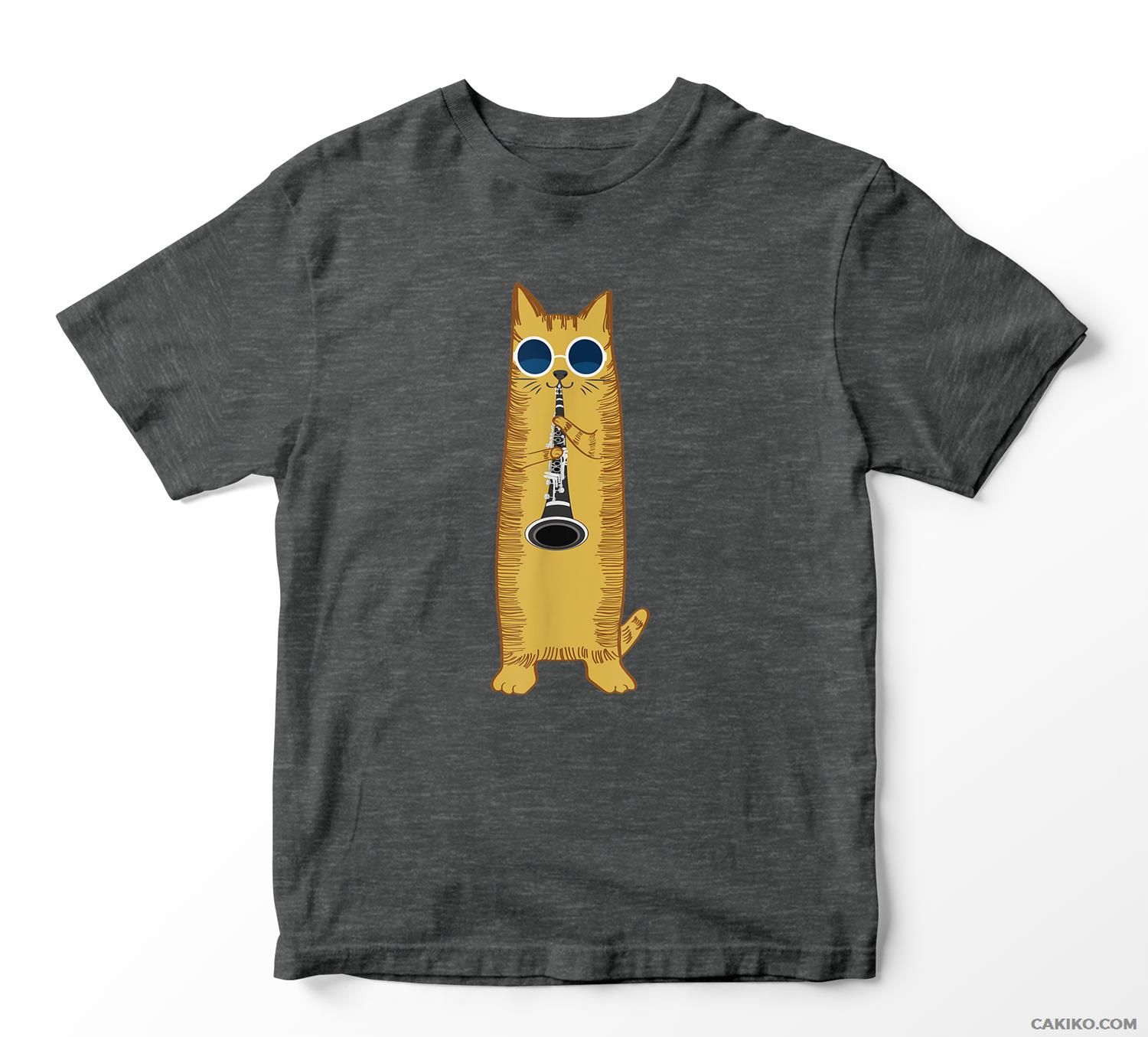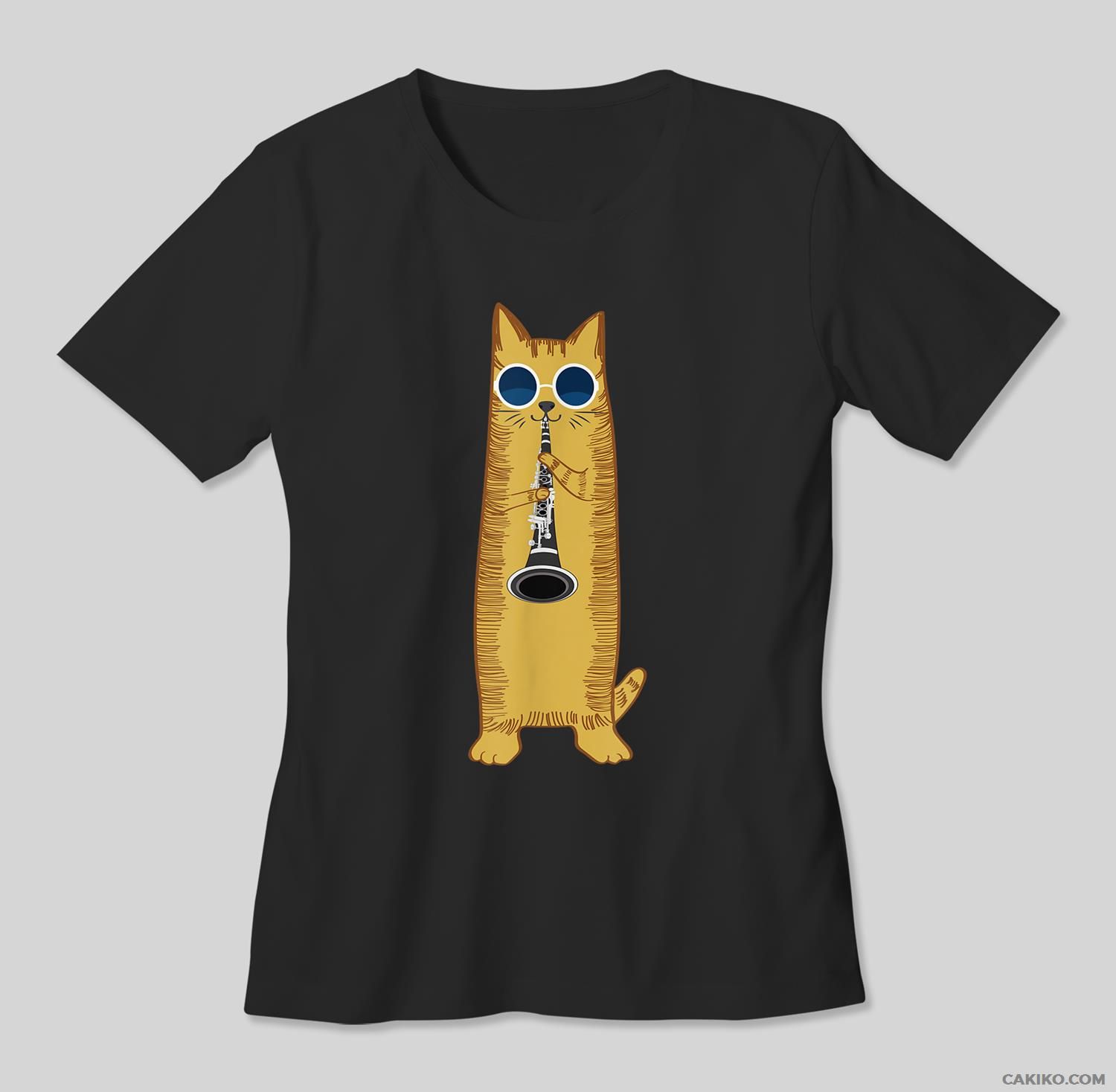 Cool Cat Playing The Clarinet Design Hippy Hipster Kitty T-Shirt