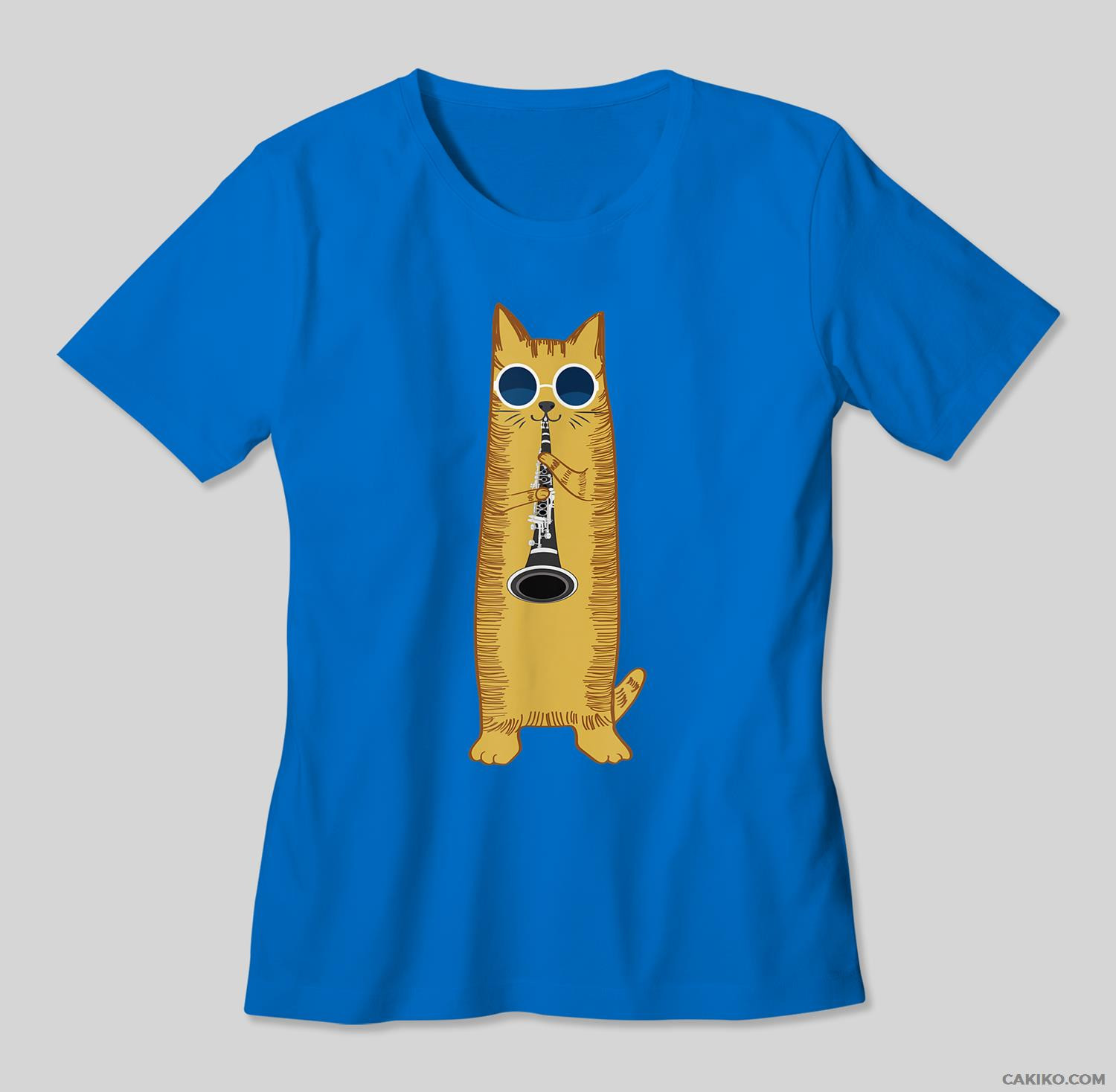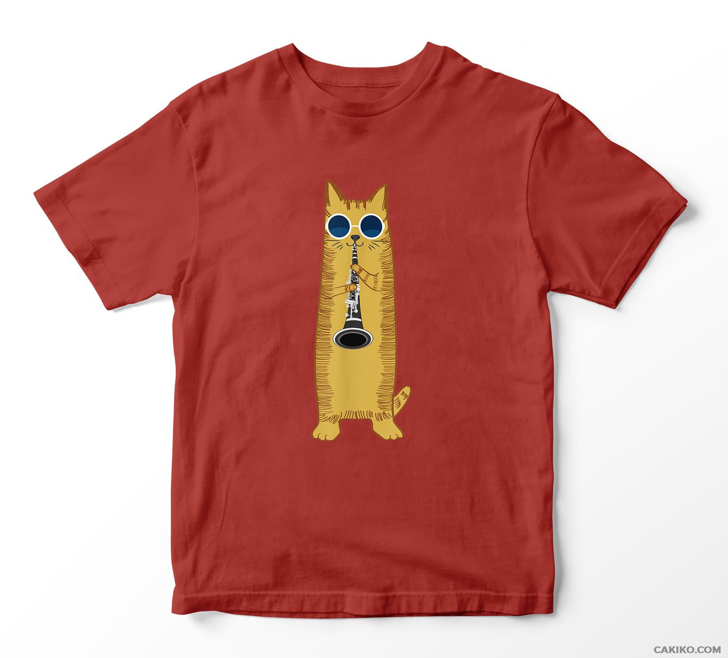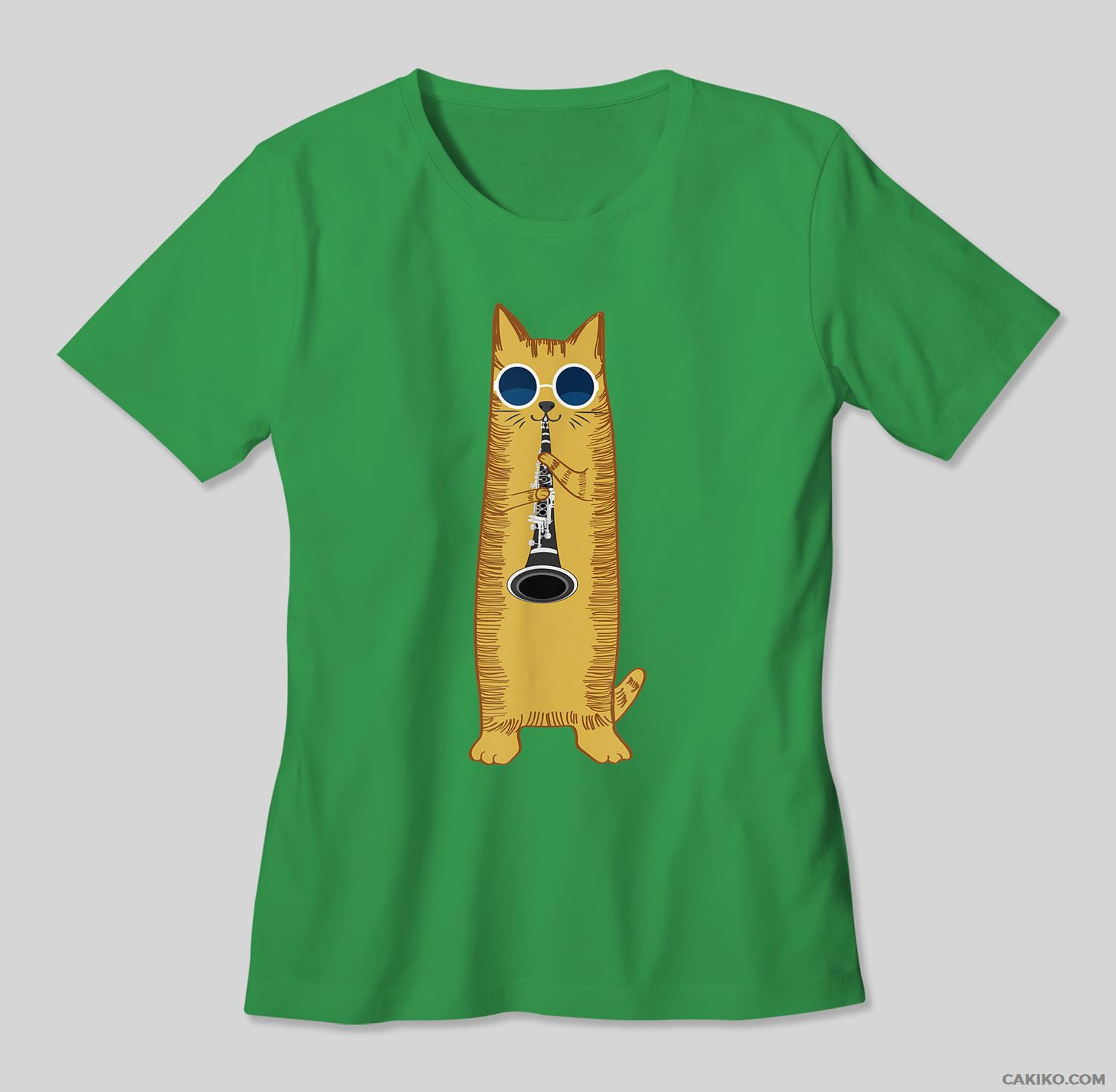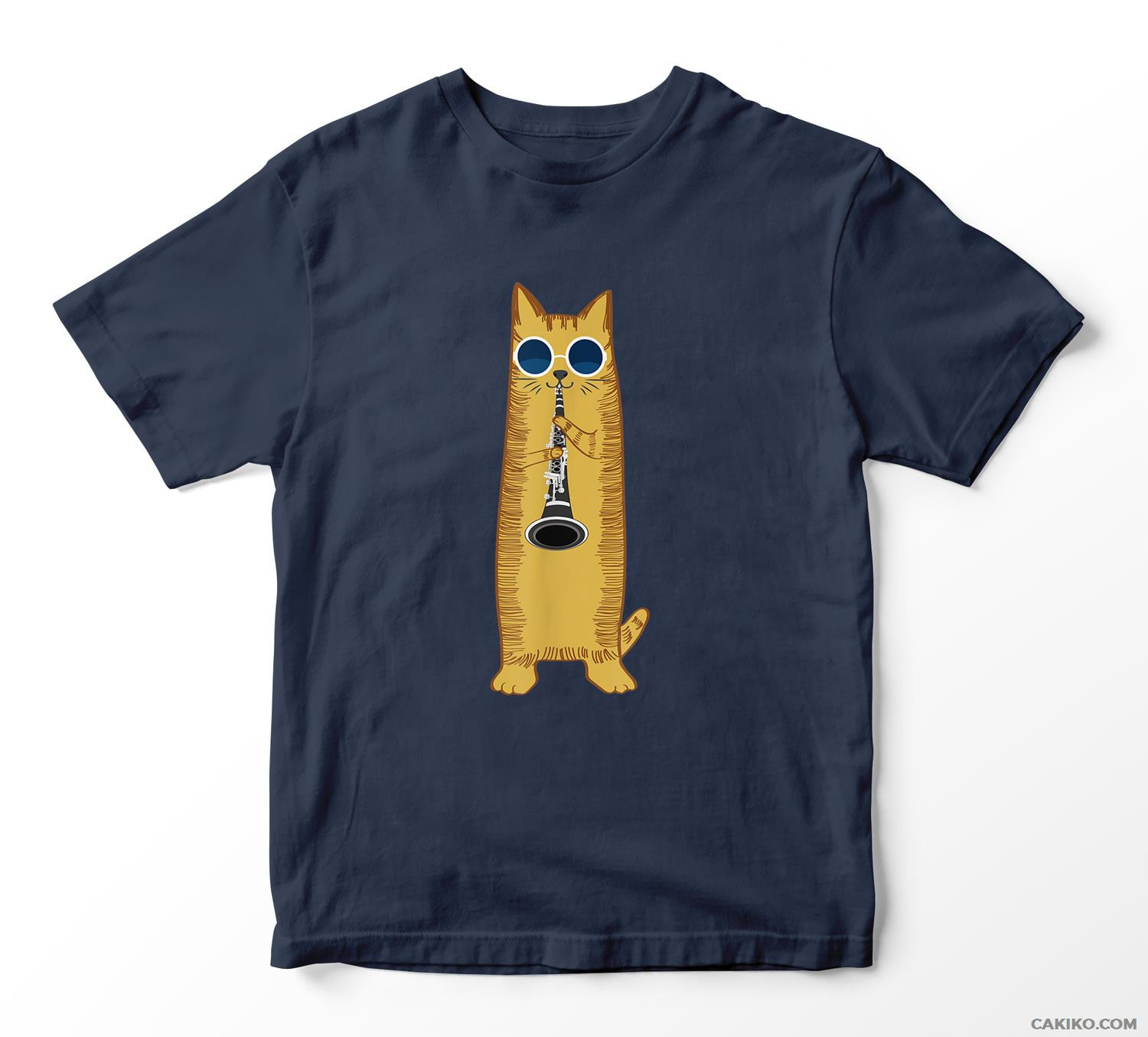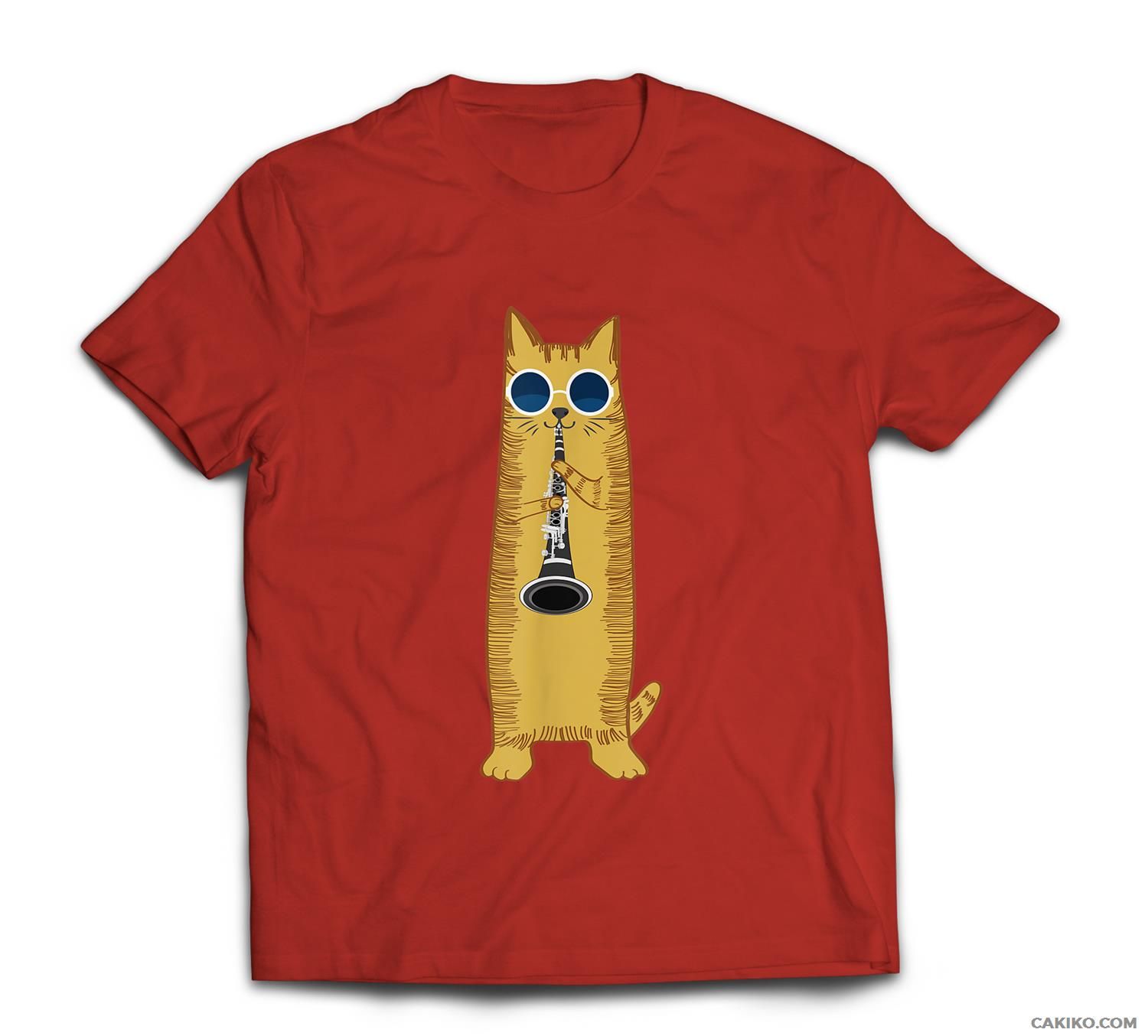 Cool Cat Playing The Clarinet Design Hippy Hipster Kitty T-Shirt
