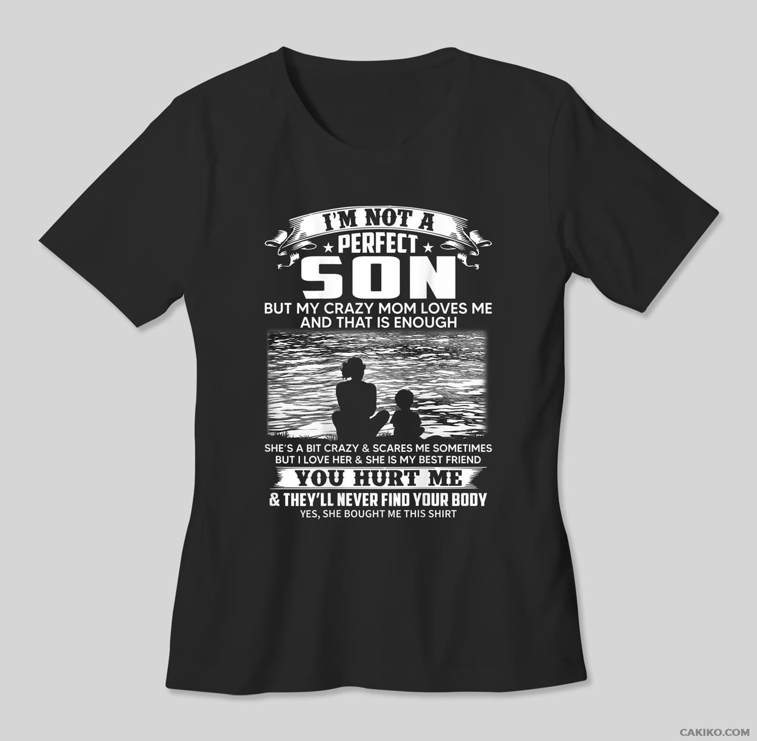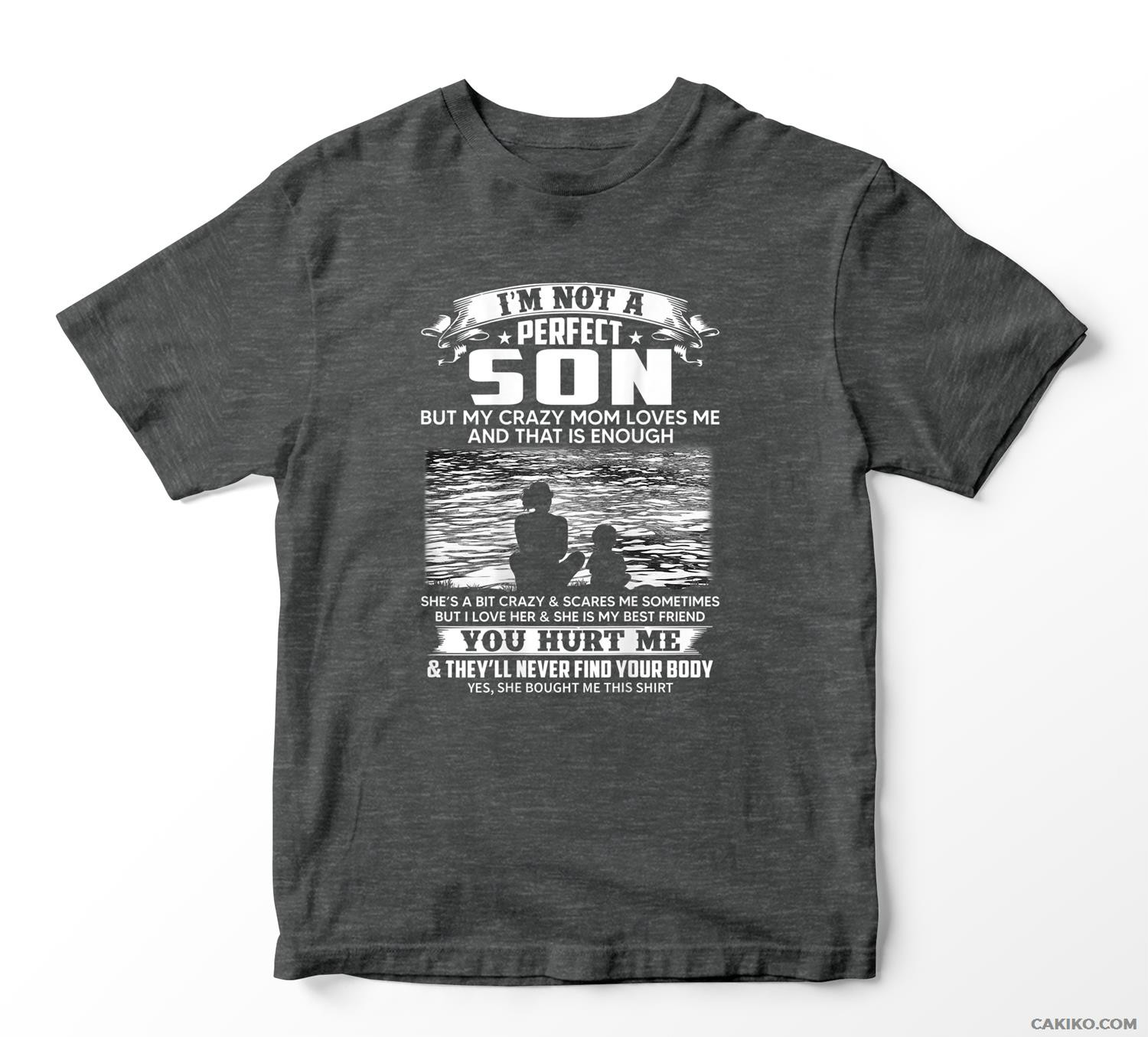 I’M Not A Perfect Son But My Crazy Mom Loves Me On Back T-Shirt