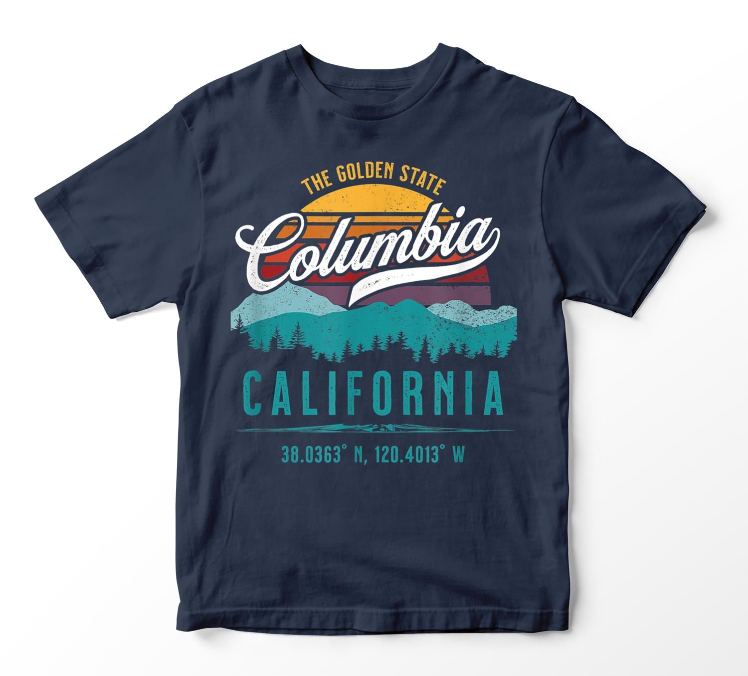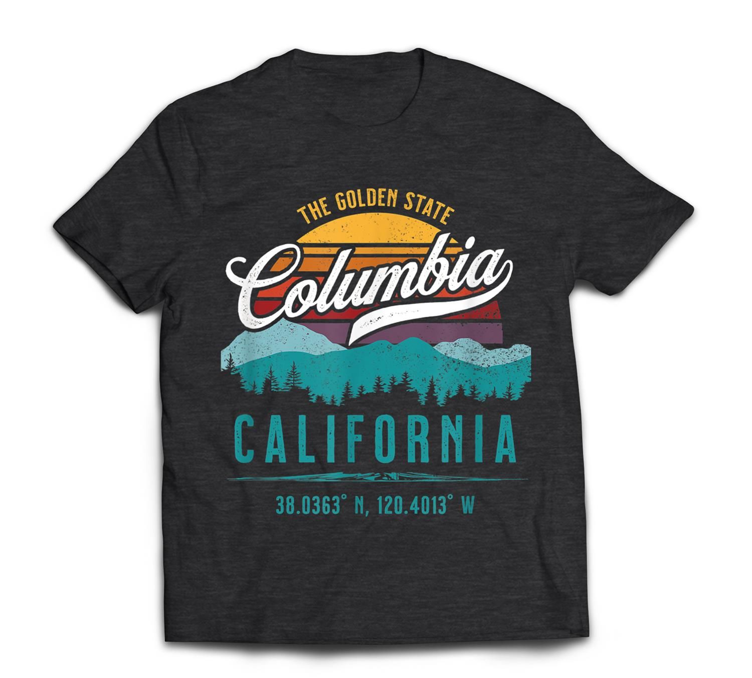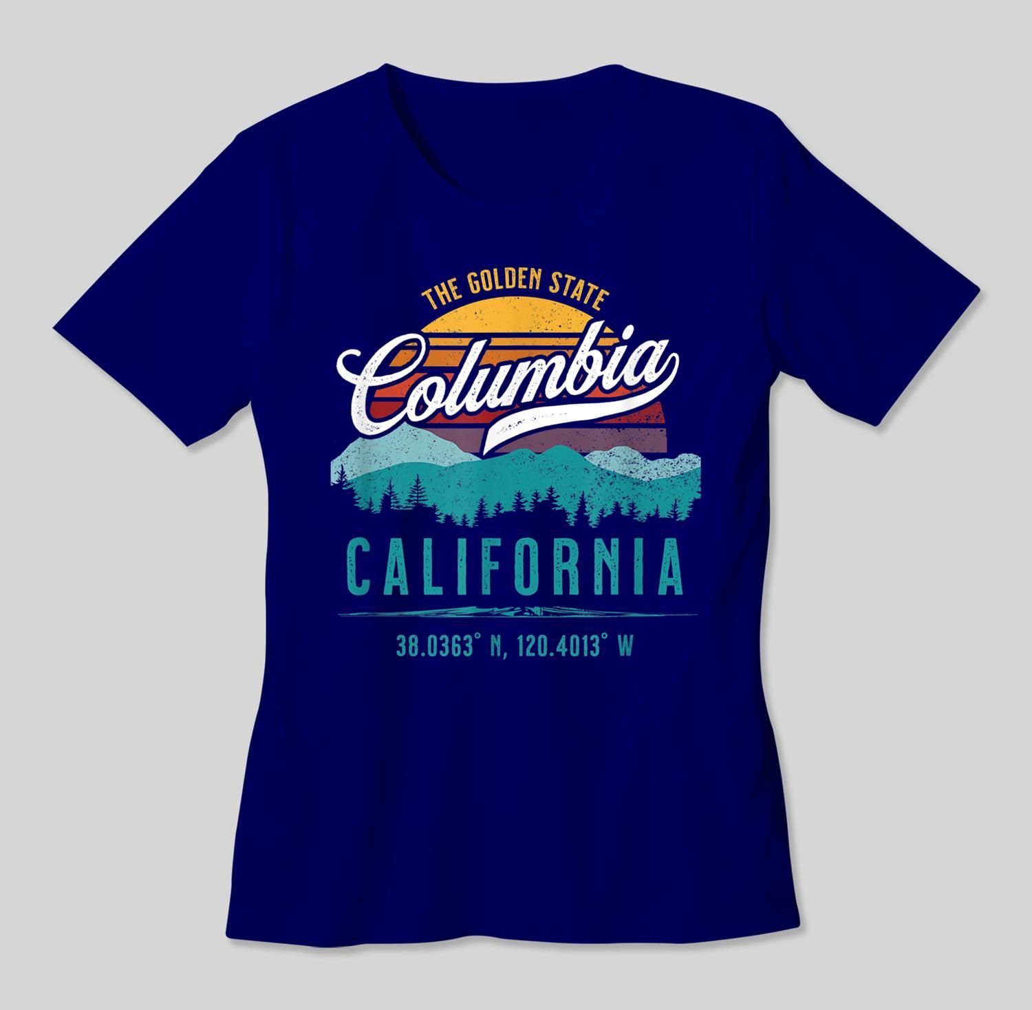 Retro Columbia California Mountains Sun Grunge Art Souvenir T-Shirt
