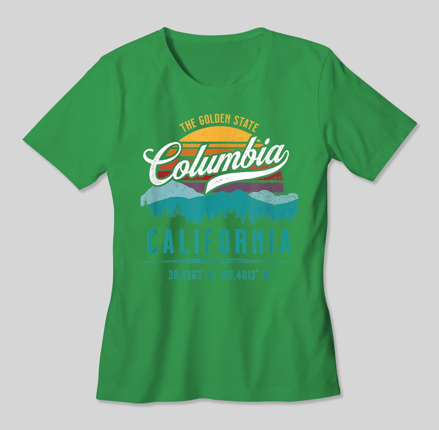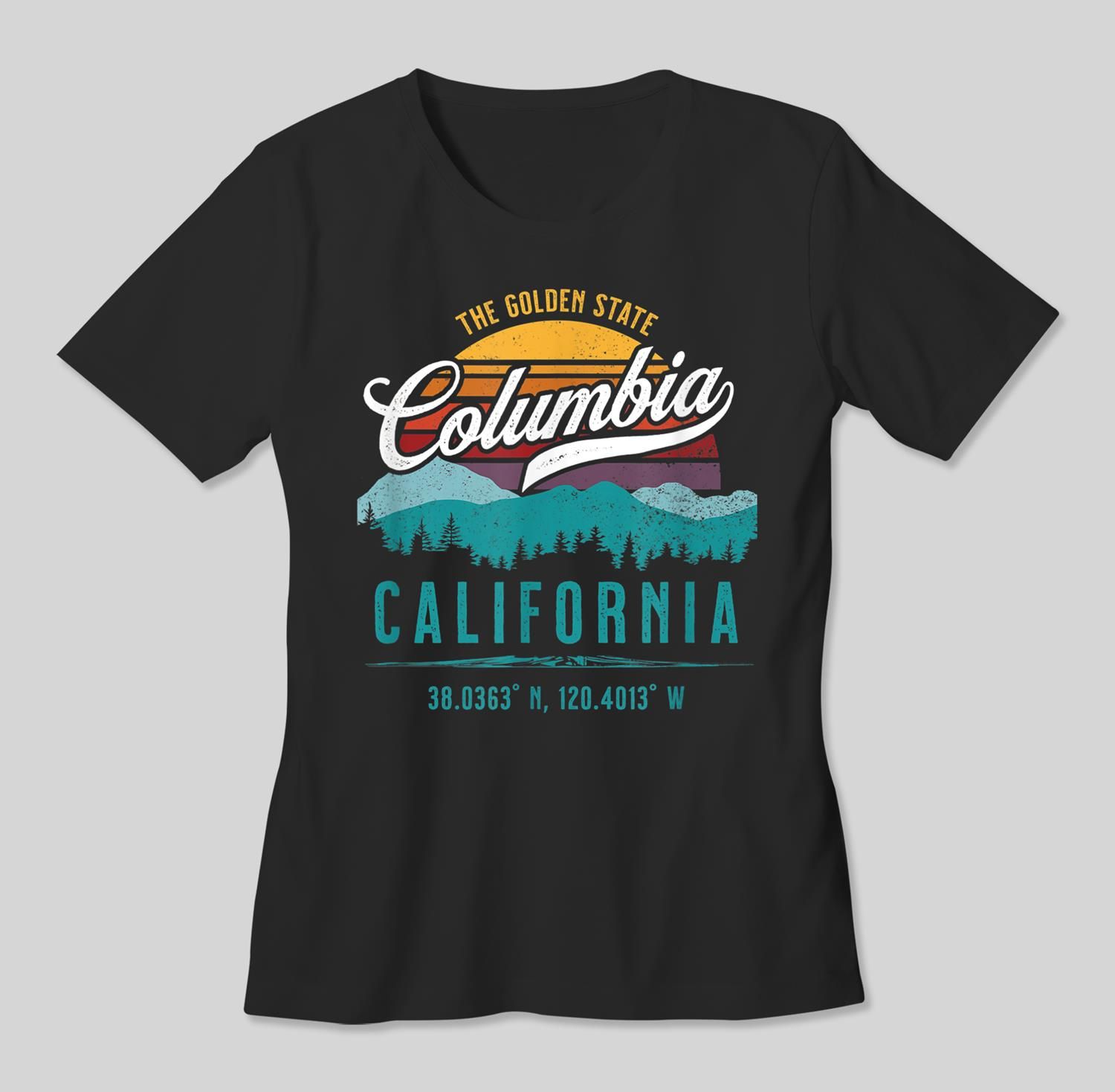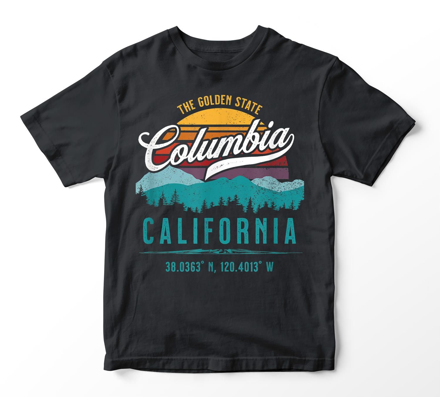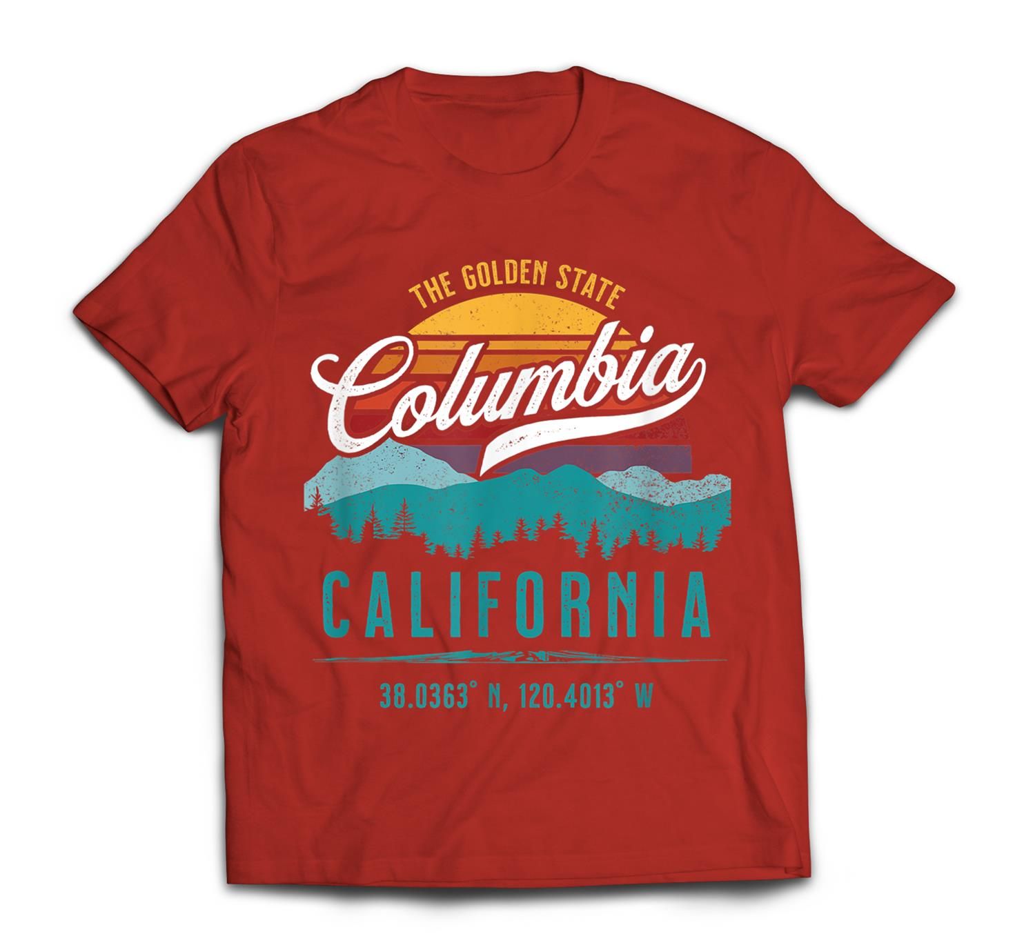 Retro Columbia California Mountains Sun Grunge Art Souvenir T-Shirt
