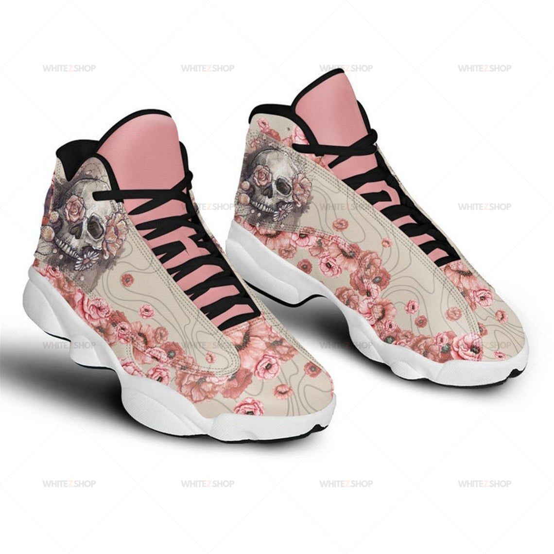 Skull And Flower Air JD 13 Sneakers Shoes, Air Jd13 Shoes, Skull Flower Shoes Hype Beat Shoes Athletic Run Casual Shoes