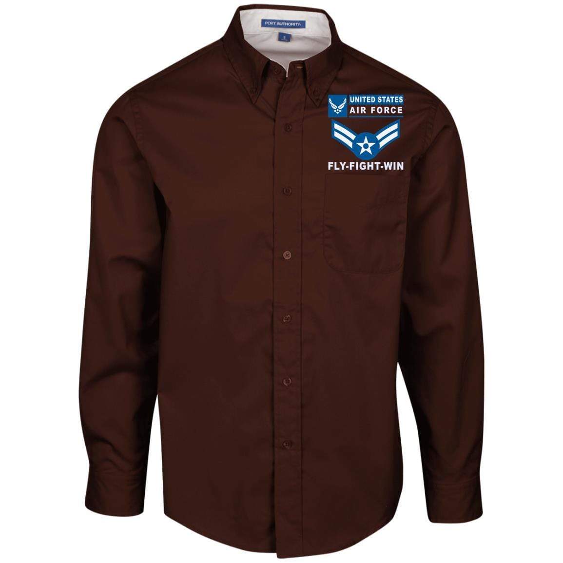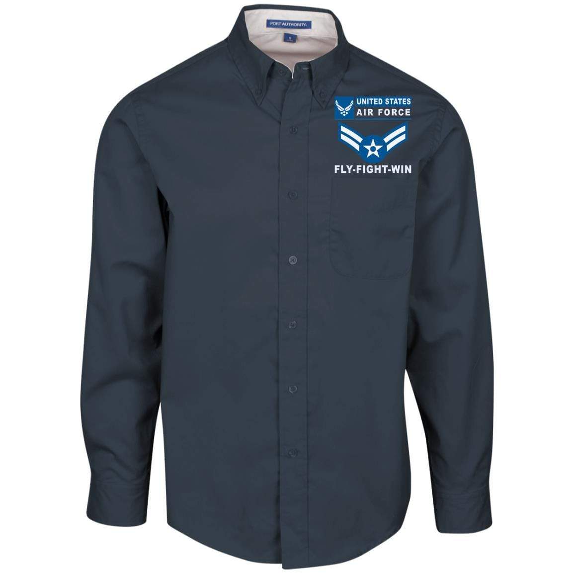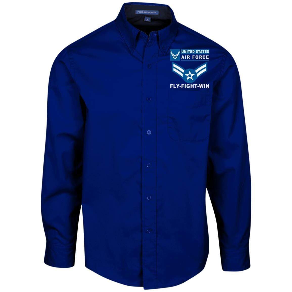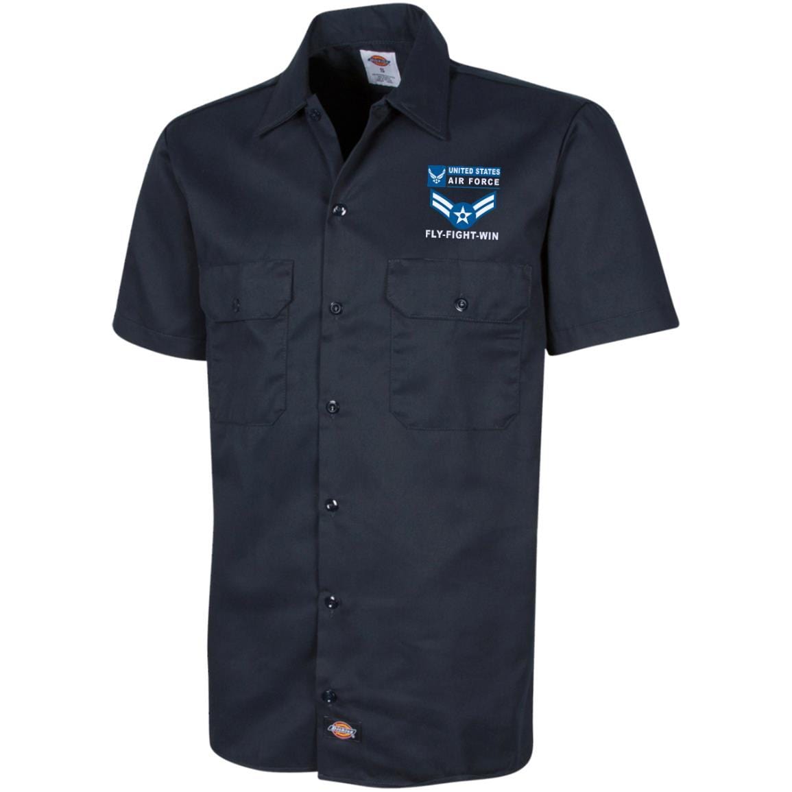 US Air Force E-3 Airman First Class A1C E3 Enlisted Airman- Fly Flight Win Embroidered Dress Shirt – Workshirt