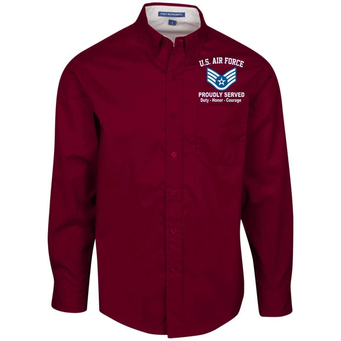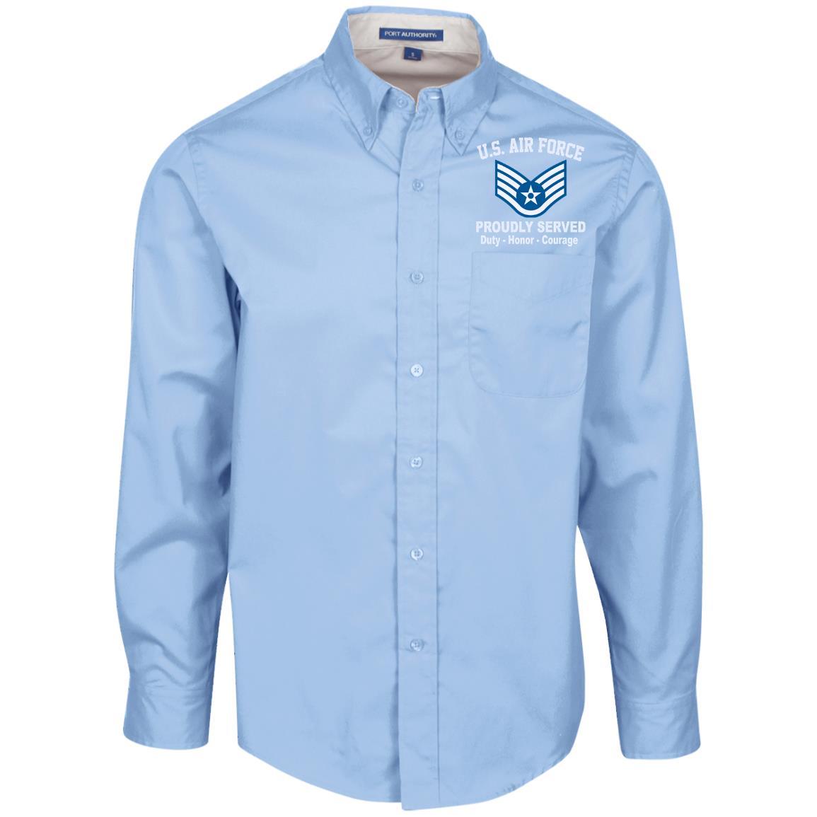 US Air Force E-5 Staff Sergeant SSgt E5 Noncommissioned Officer Proudly Served Embroidered Port Authority Men’s LS Dress Shirt