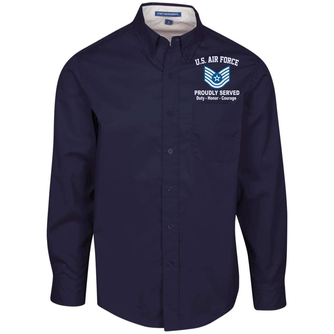 US Air Force E-6 Technical Sergeant TSgt E6 Noncommissioned Officer Proudly Served Embroidered Port Authority Men’s LS Dress Shirt