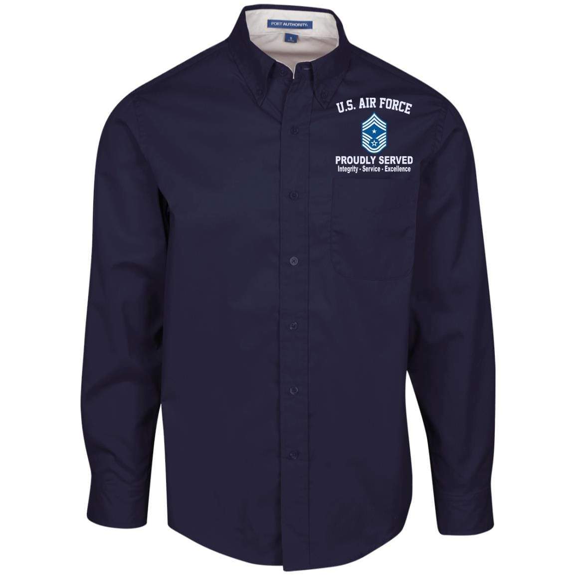 US Air Force E-9 Command Chief Master Sergeant CCM E9 Noncommissioned Officer Core Values Embroidered Port Authority Men’s LS Dress Shirt