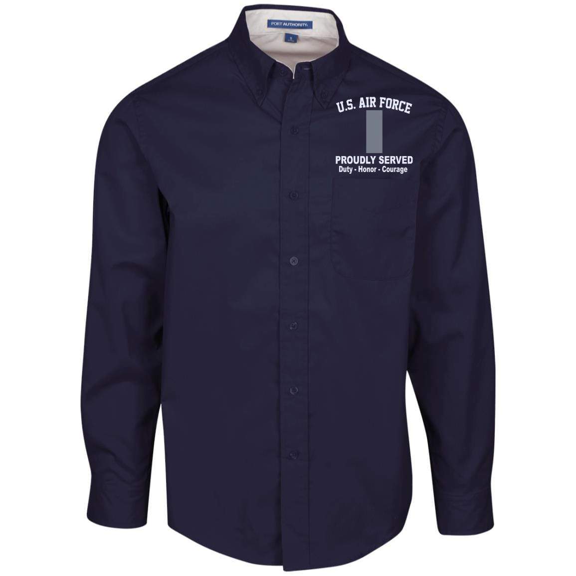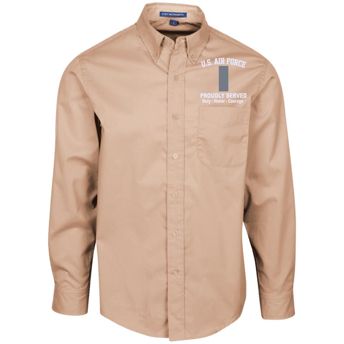 US Air Force O-2 First Lieutenant 1st L O2 Commissioned Officer Proudly Served Embroidered Port Authority Men’s LS Dress Shirt