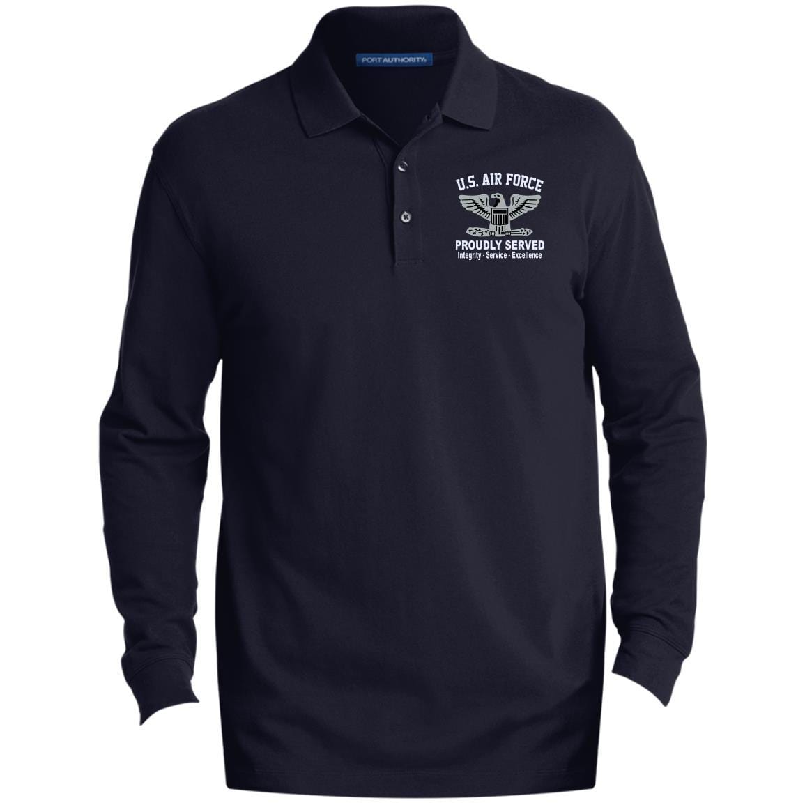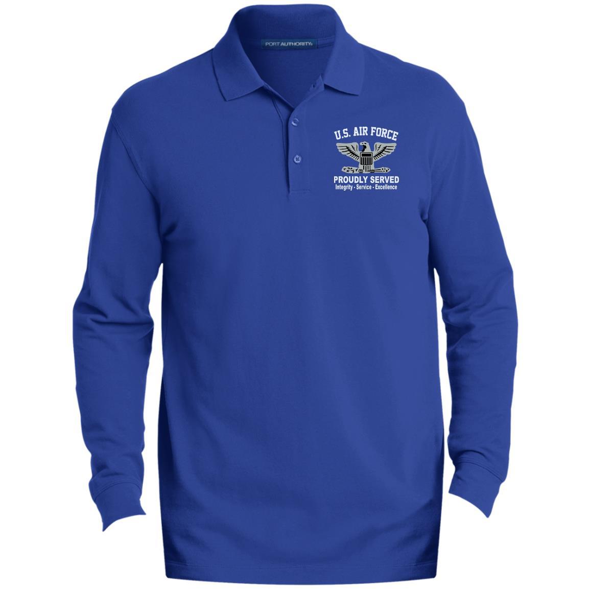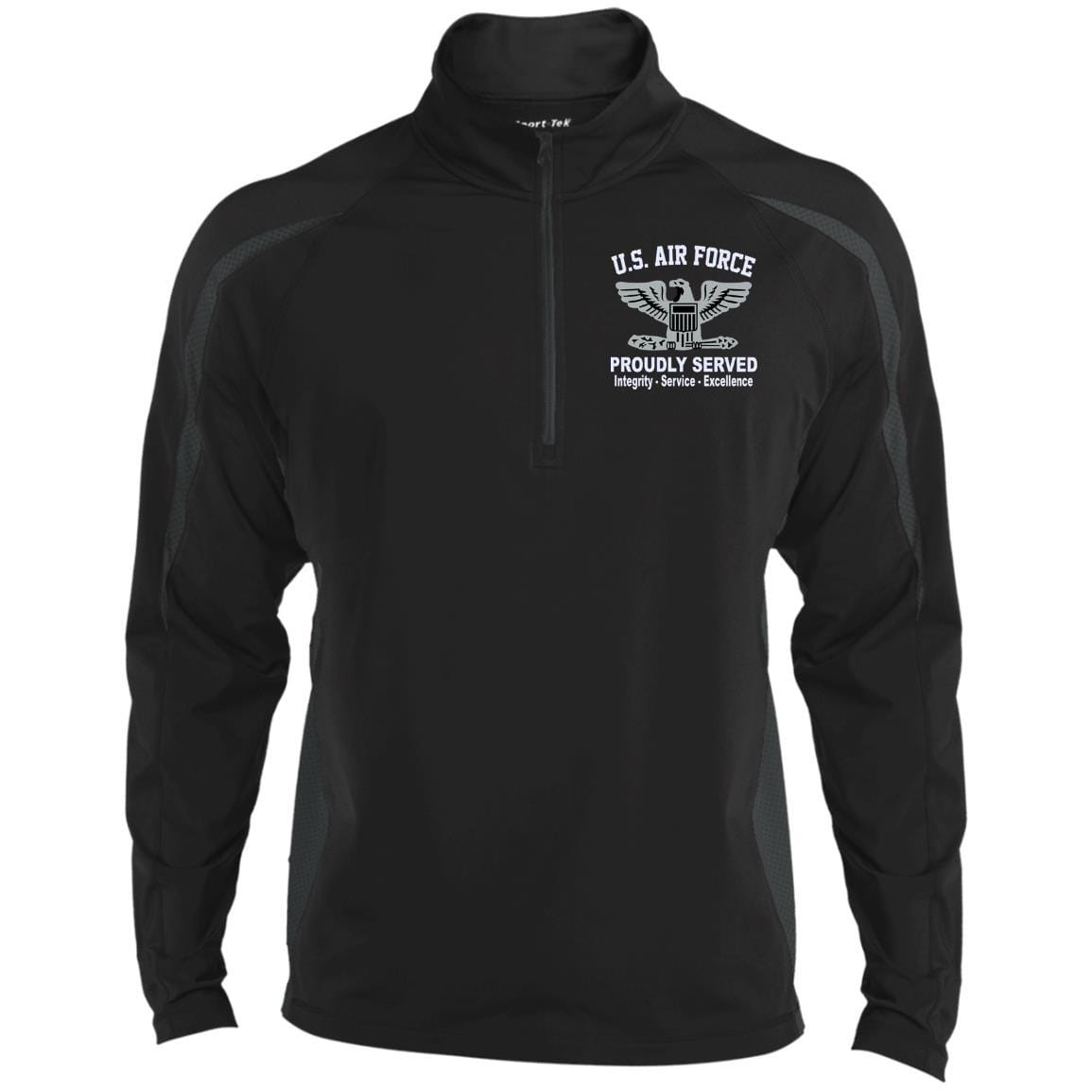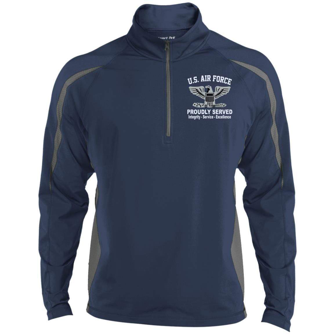 US Air Force O-6 Colonel Col O6 Field Officer Core Values Embroidered LS Polo Shirt – Colorblock 1/2 Zip
