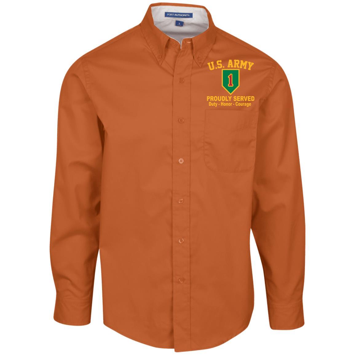 US Army 1st Infantry Division Embroidered Port Authority Men’s LS Dress Shirt