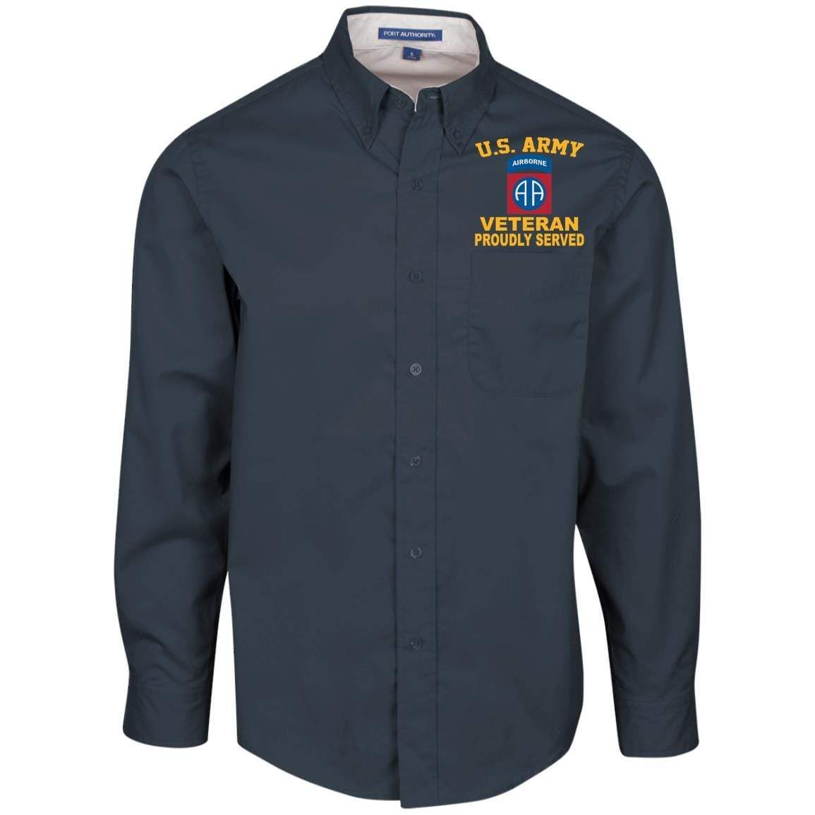 US Army 82nd Airborne Veteran Embroidered Port Authority Men’s LS Dress Shirt