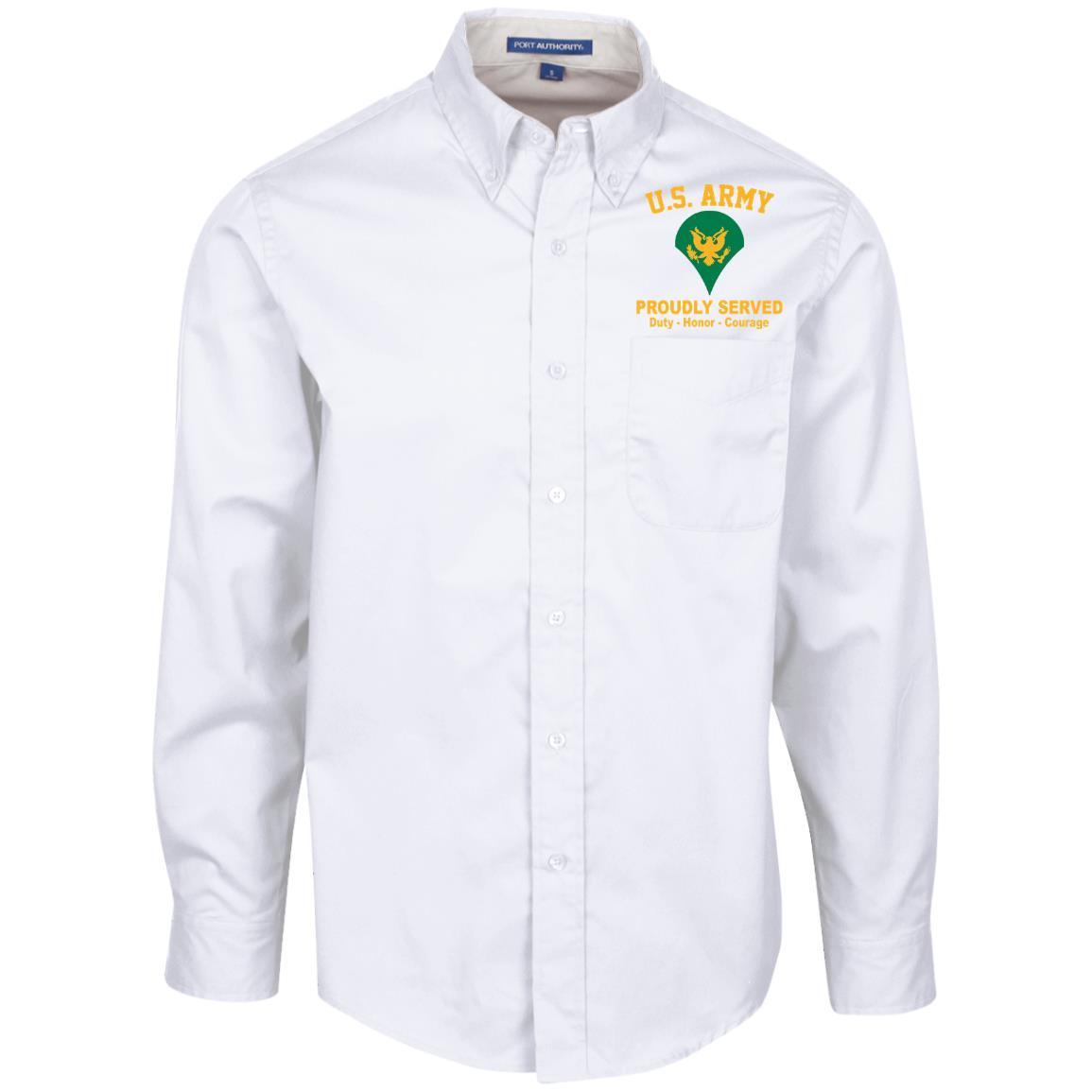 US Army E-4 SPC E4 Specialist Ranks Embroidered Port Authority Men’s LS Dress Shirt