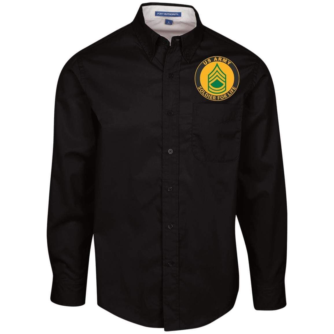 US Army E-7 Sergeant First Class E7 SFC Soldier For Life Embroidered Men’s LS Dress Shirt