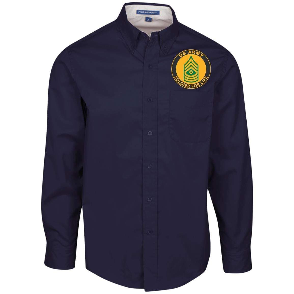 US Army E-8 First Sergeant E8 1SG Soldier For Life Embroidered Men’s LS Dress Shirt
