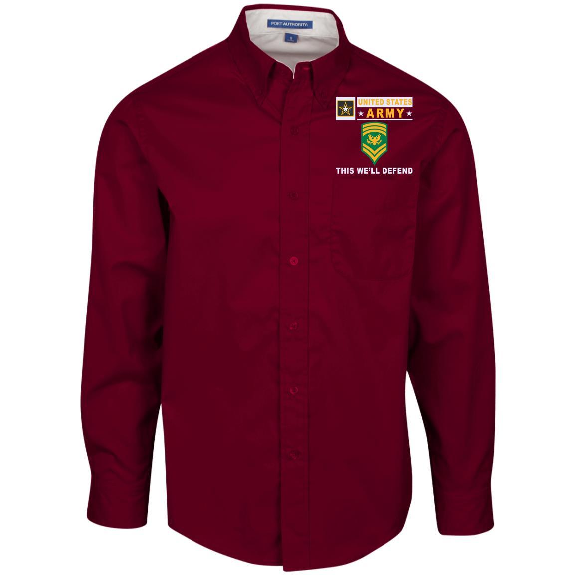 US Army E-9 SPC E9 SP9 Specialist 9- This we’ll defend Embroidered Dress Shirt – Workshirt