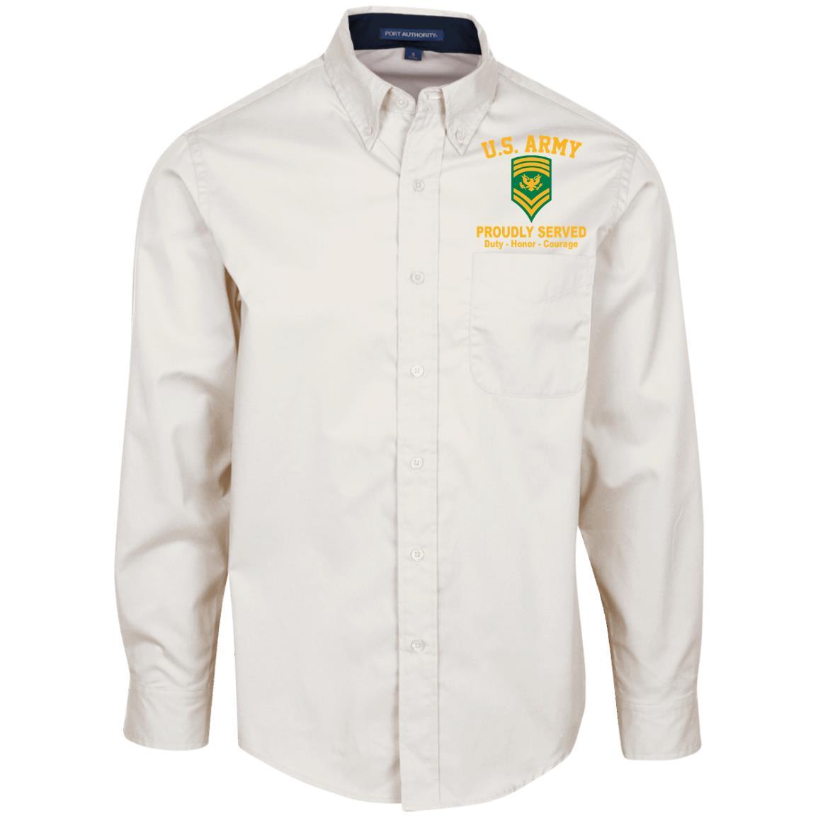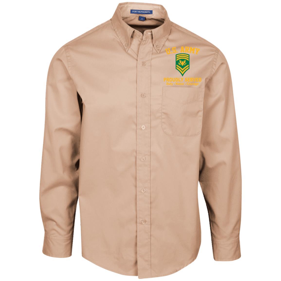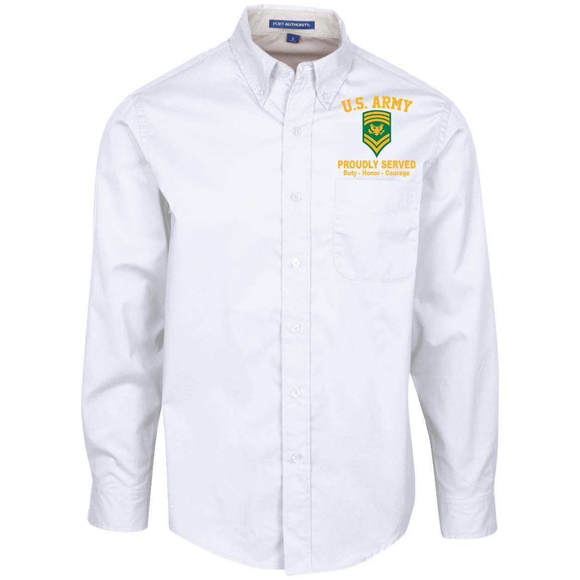 US Army E-9 SPC E9 Specialist Ranks Embroidered Port Authority Men’s LS Dress Shirt