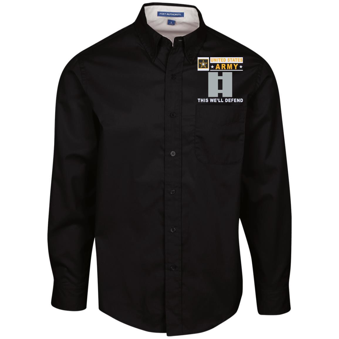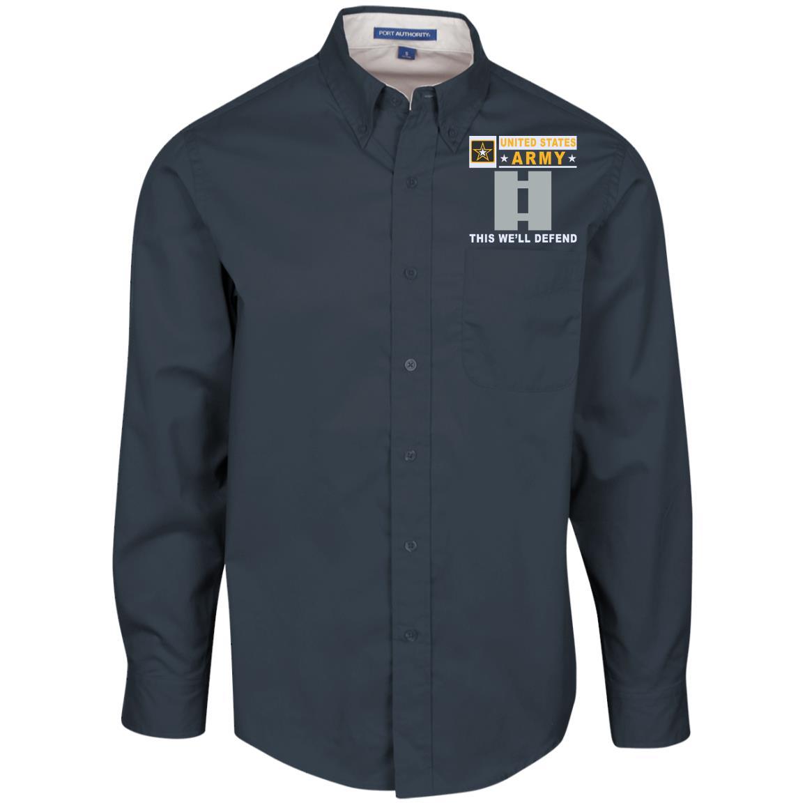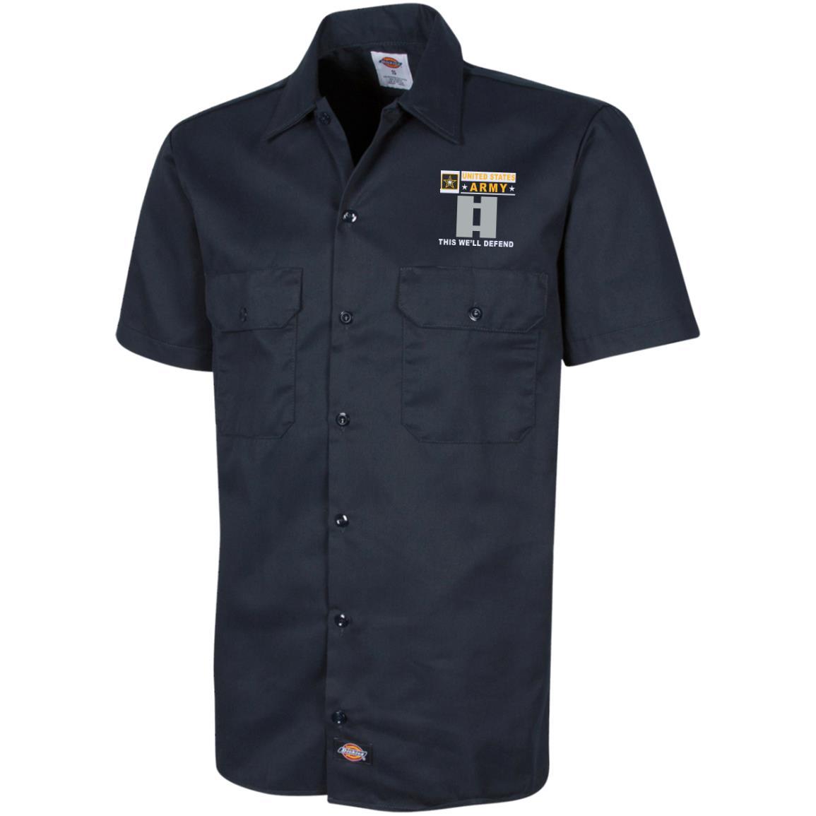 US Army O-3 Captain O3 CPT Commissioned Officer- This we’ll defend Embroidered Dress Shirt – Workshirt