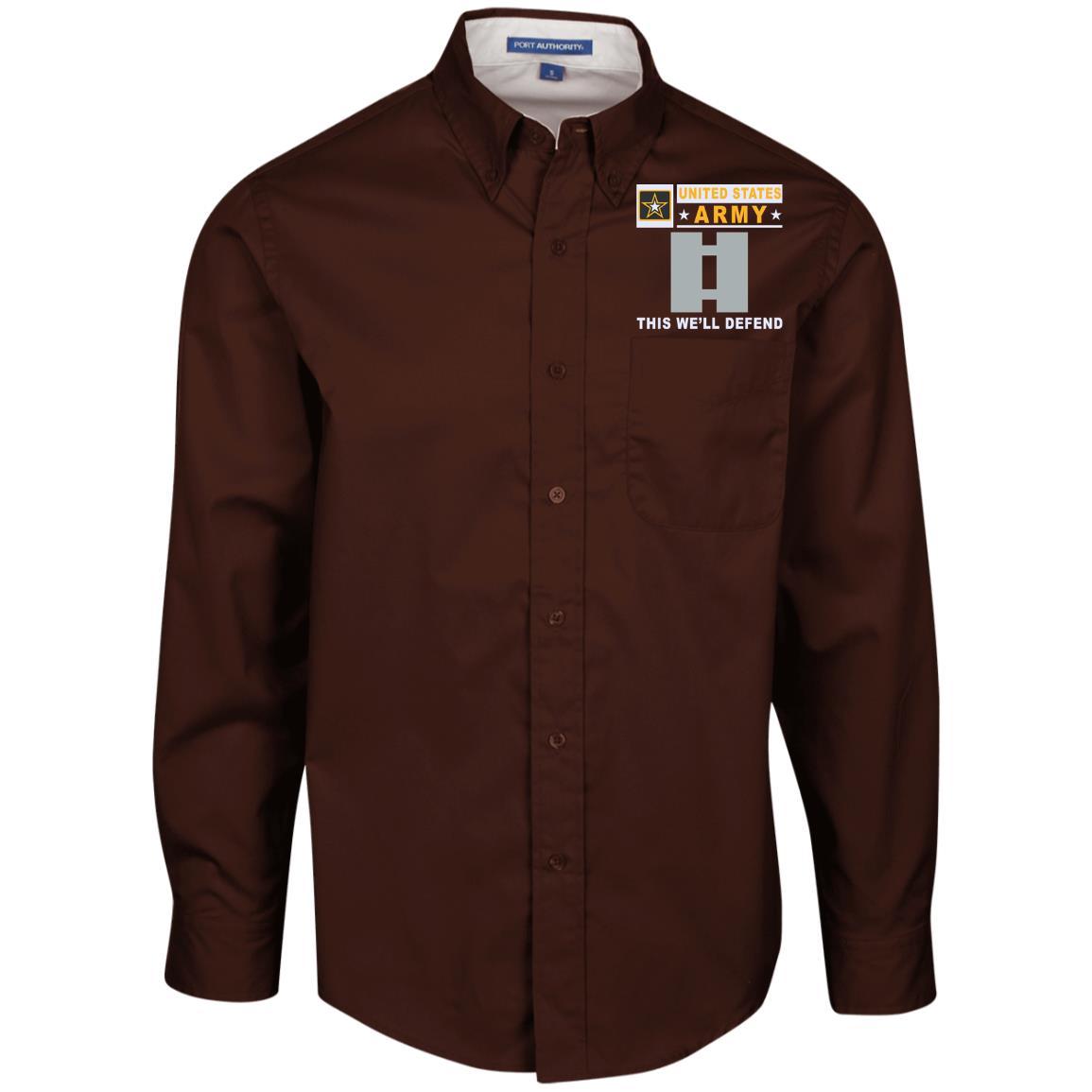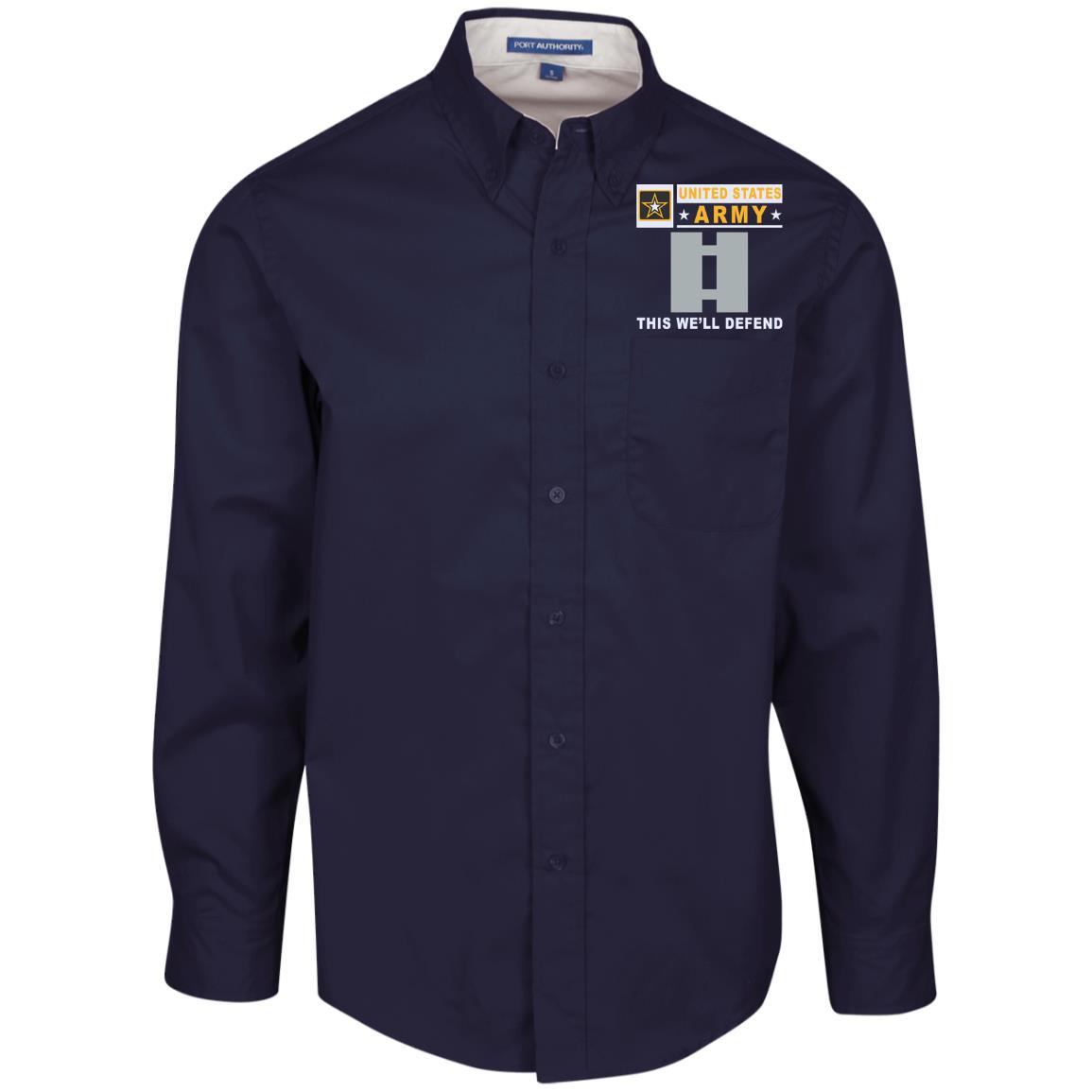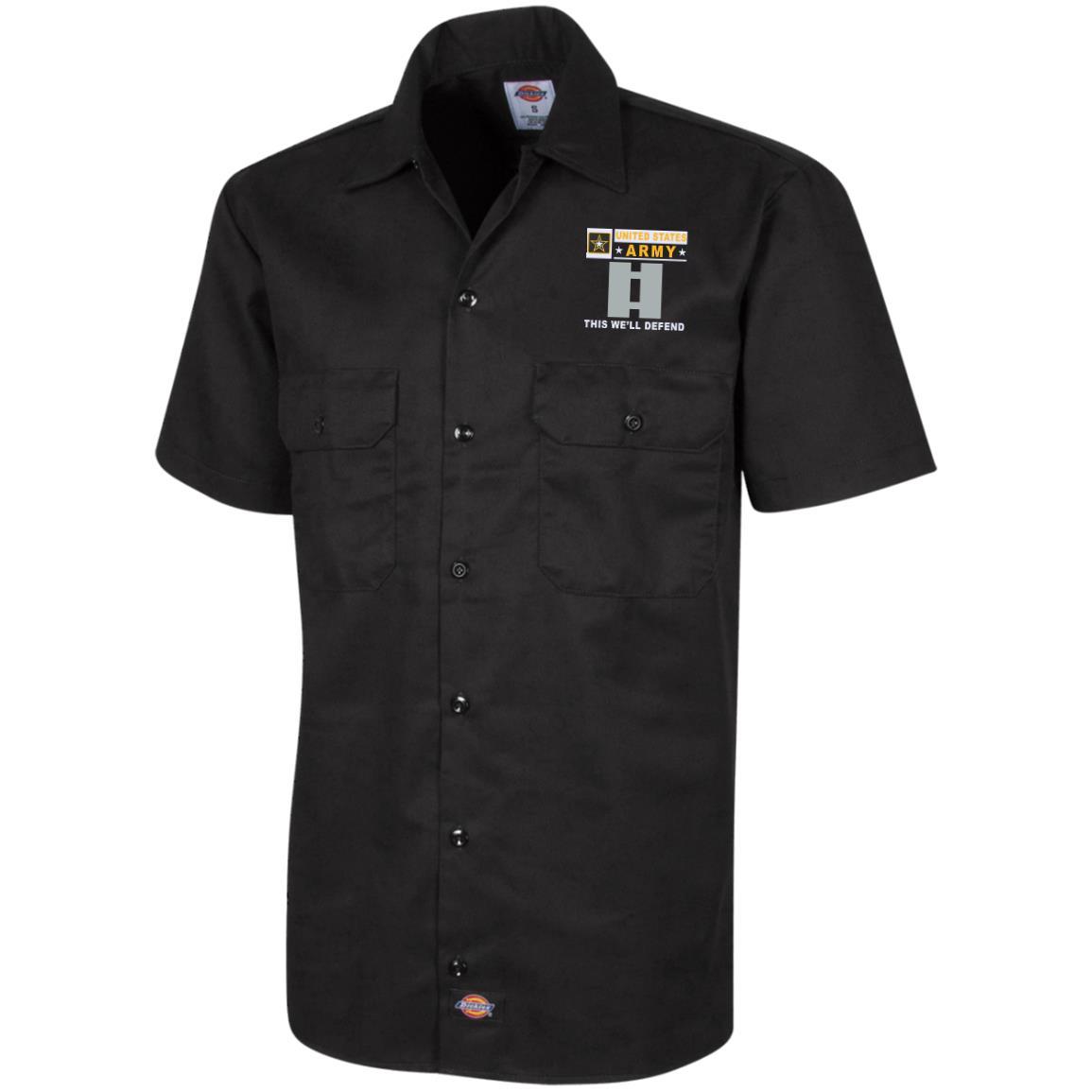 US Army O-3 Captain O3 CPT Commissioned Officer- This we’ll defend Embroidered Dress Shirt – Workshirt