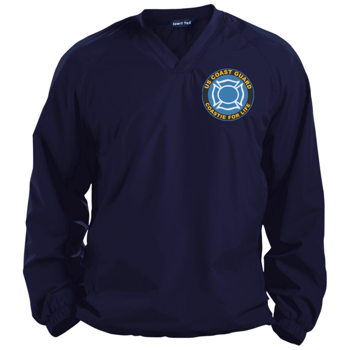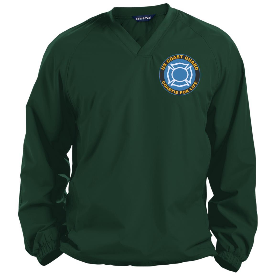 US Coast Guard Fire and Safety Specialist FF Coastie For Life Embroidered Sport-Tek Pullover V-Neck Windshirt