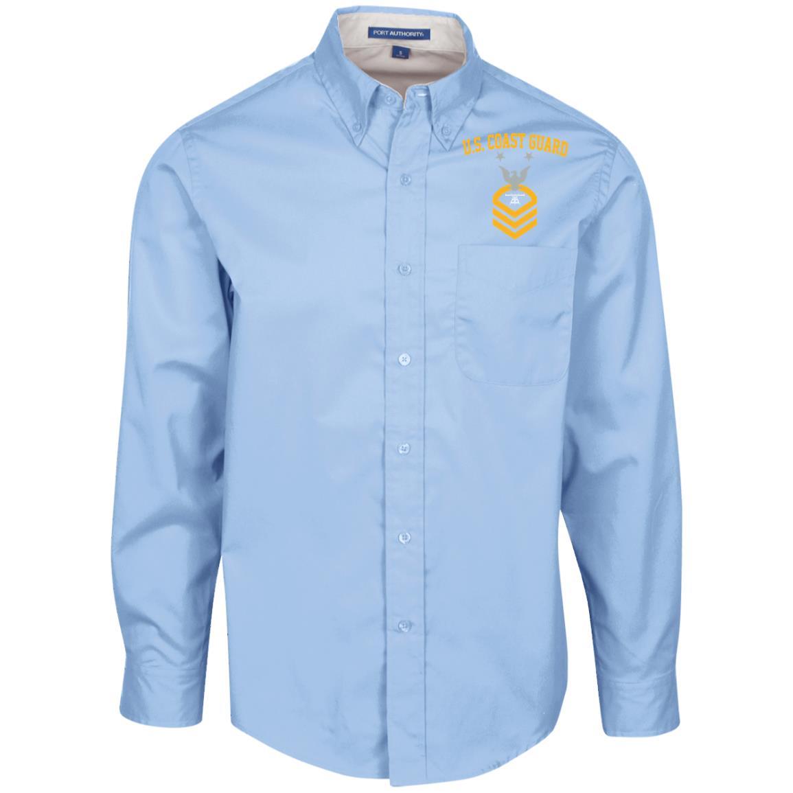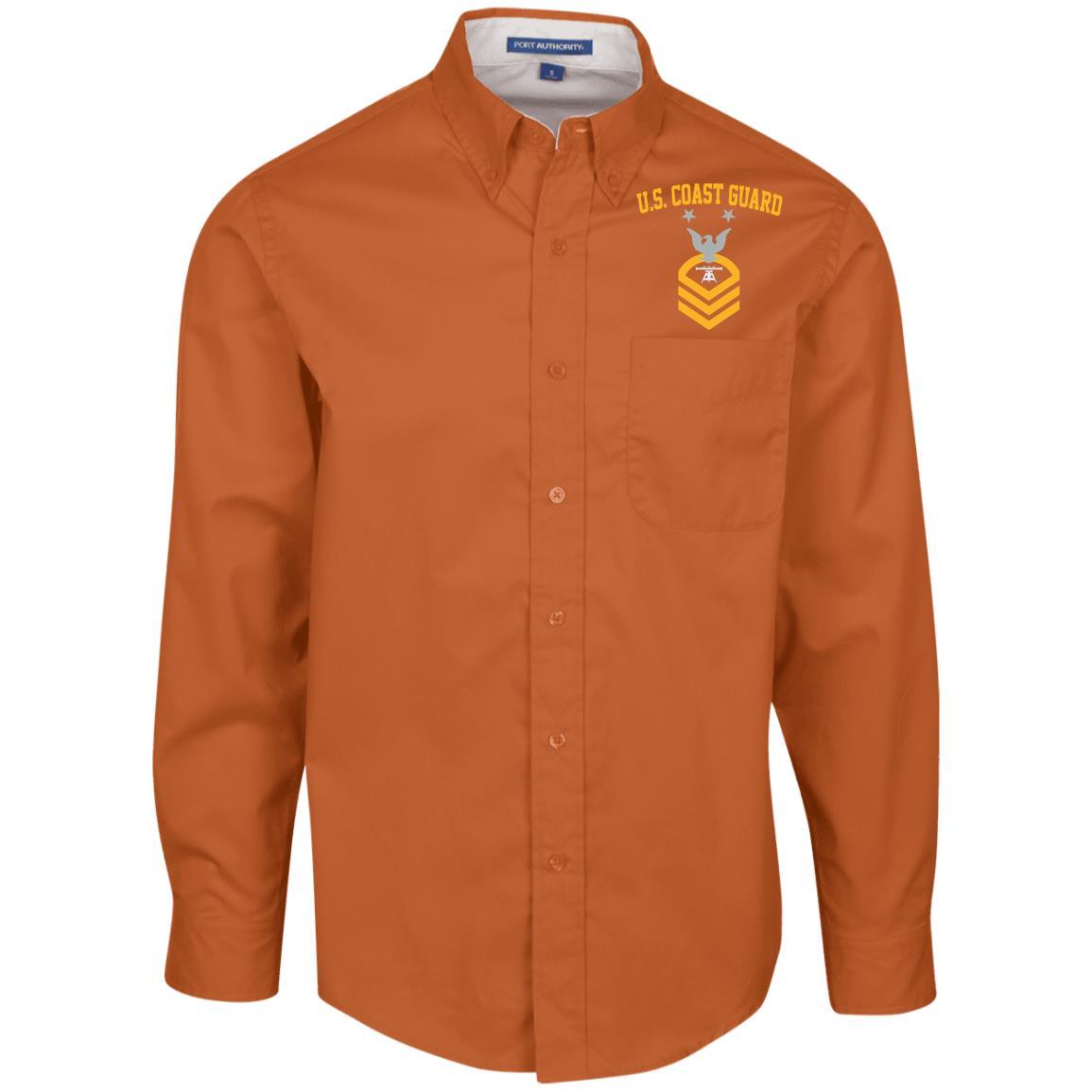 US Coast Guard Fire Control Technician FT E-9 Rating Badges Embroidered Port Authority Men’s LS Dress Shirt