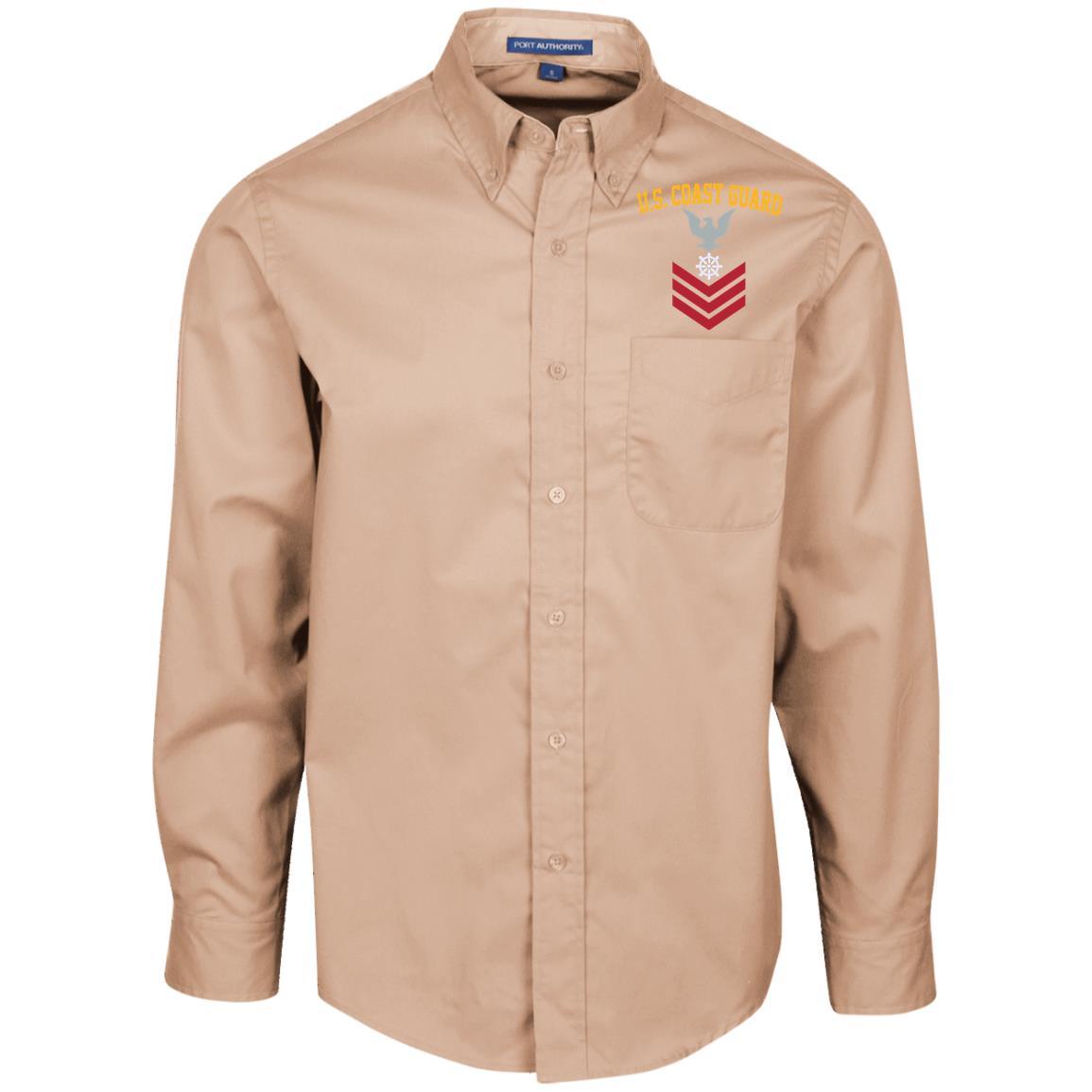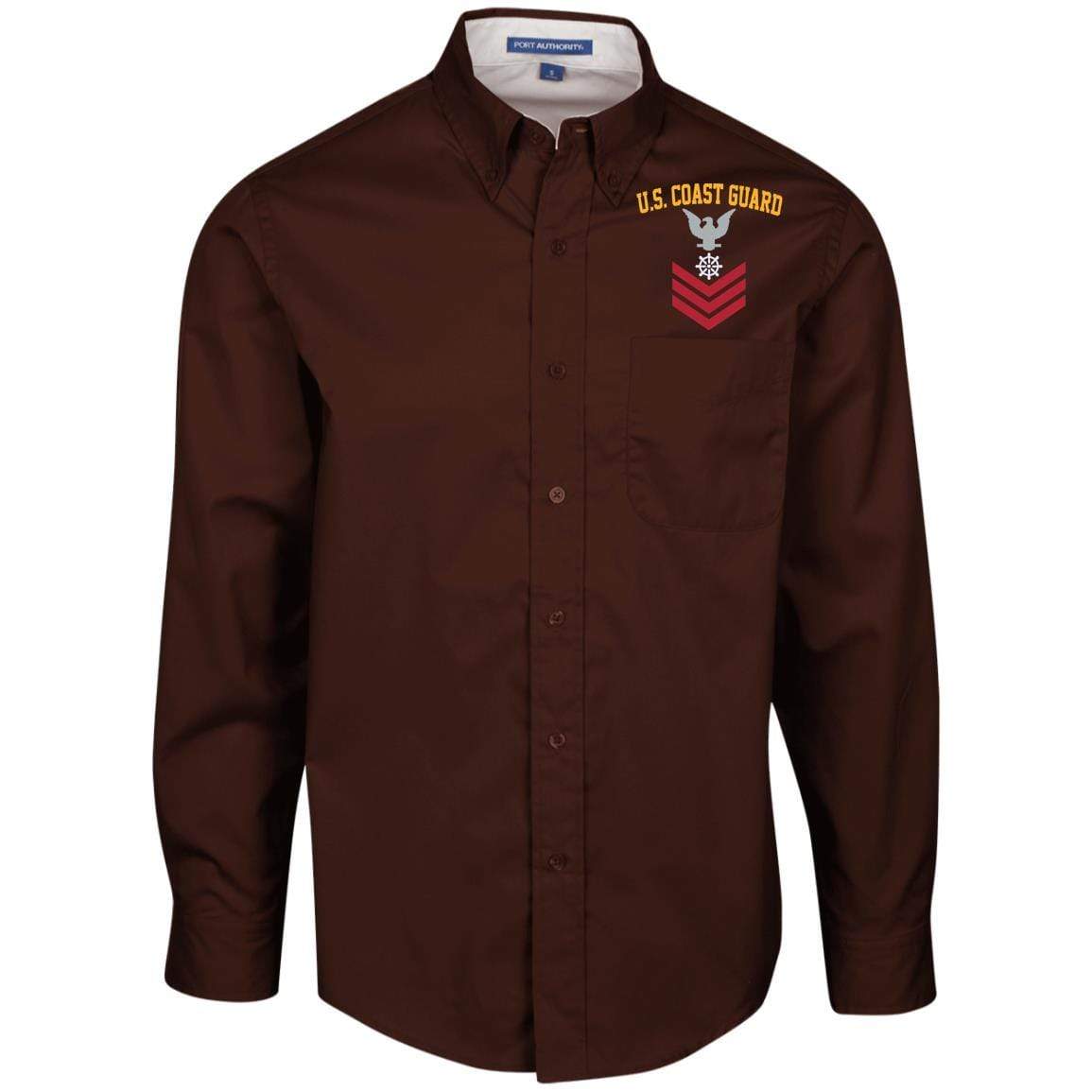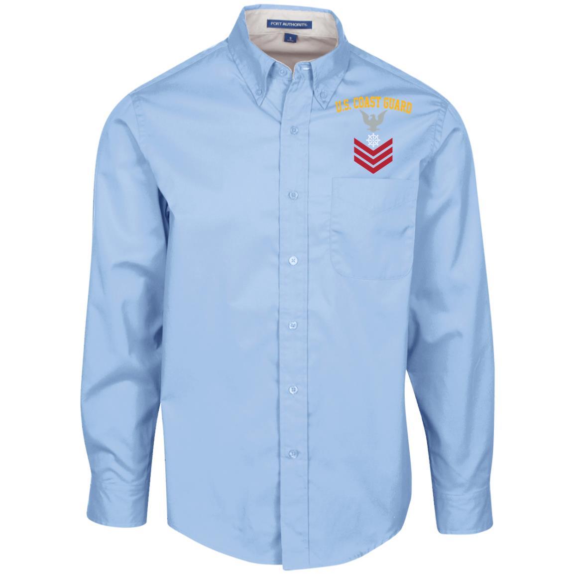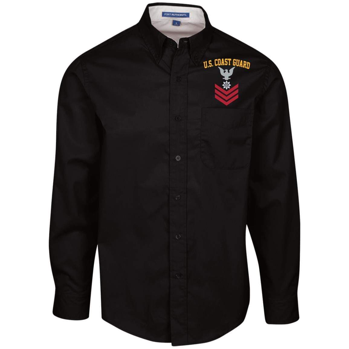 US Coast Guard Quartermaster QM E-6 Rating Badges Embroidered Port Authority Men’s LS Dress Shirt