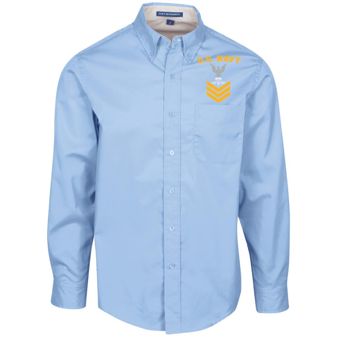 US Navy Aircrew Survival Equipmentman PR E-6 Rating Badges Gold Stripe Embroidered Port Authority Men’s LS Dress Shirt
