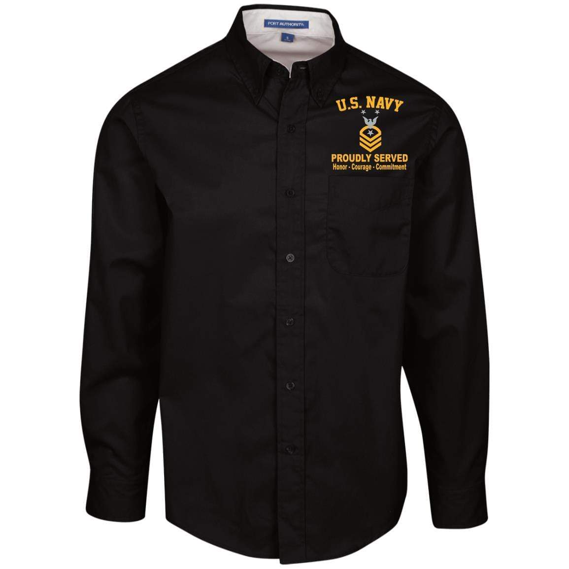 US Navy E-9 Command Master Chief Petty Officer E9 CMDCM Senior Enlisted Advisor Embroidered Men’s LS Dress Shirt